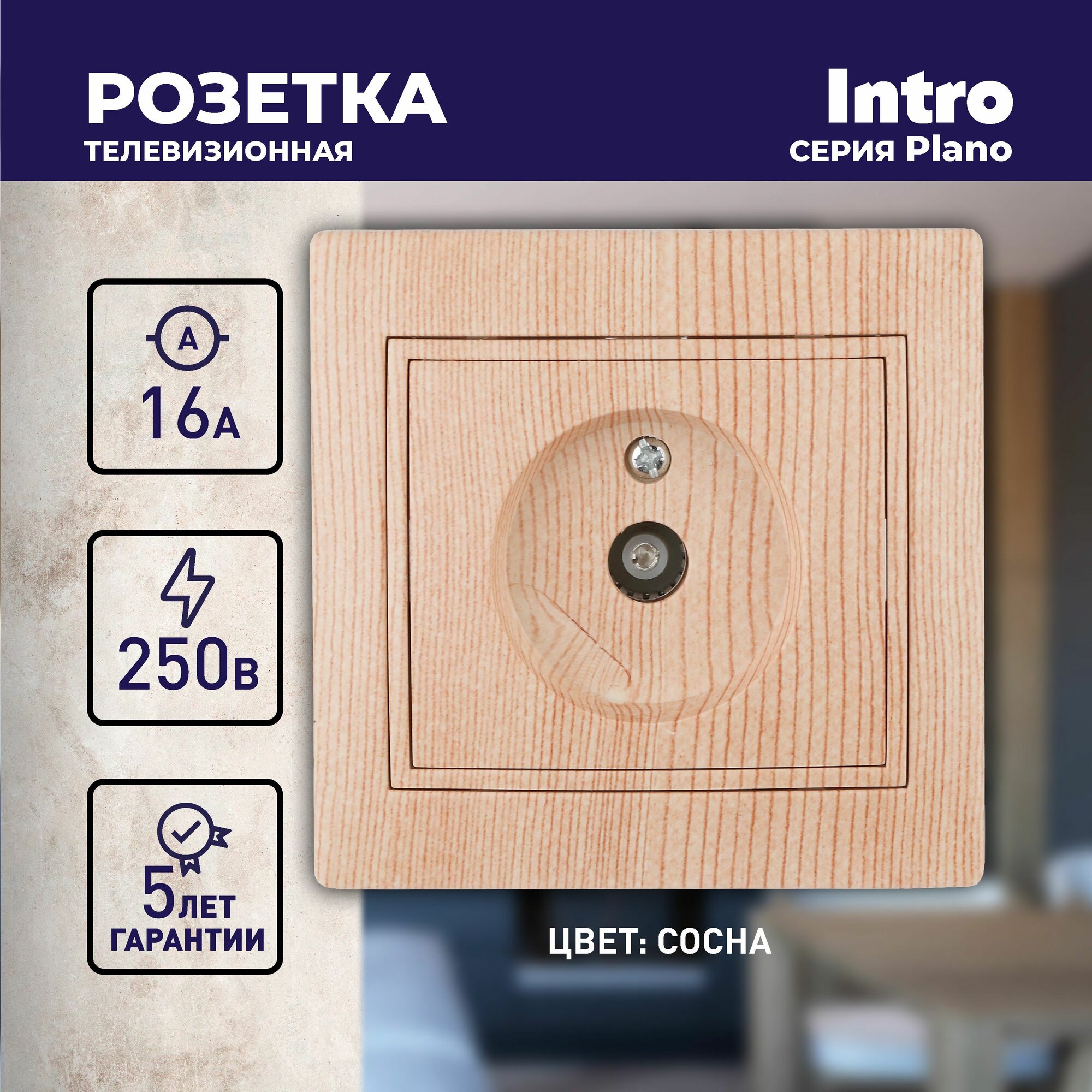 Розетка телевизионная одиночная Intro Plano 1-301-11 скрытой установки сосна информация: