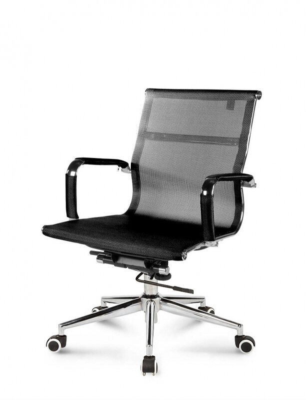 Кресло офисное черное, сетчатое на металлической крестовине
