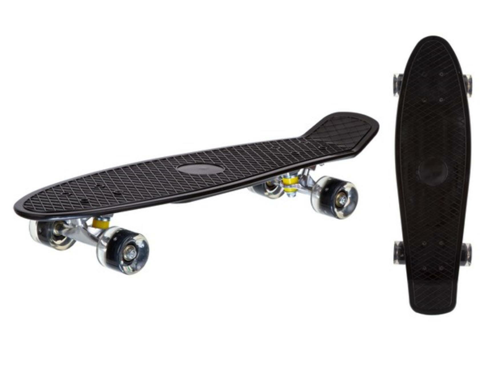 Скейтборд пластиковый, широкие колеса PU со светом, стойка: алюминиевая, размер платформы: 67x20 см. информация: