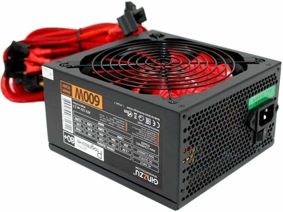 Ginzzu PC600 14CM(Red) 80+ black,APFC,24+4p,2 PCI-E(6+2), 5*SATA, 4*IDE,оплетка, кабель питания,цветная коробка информация: