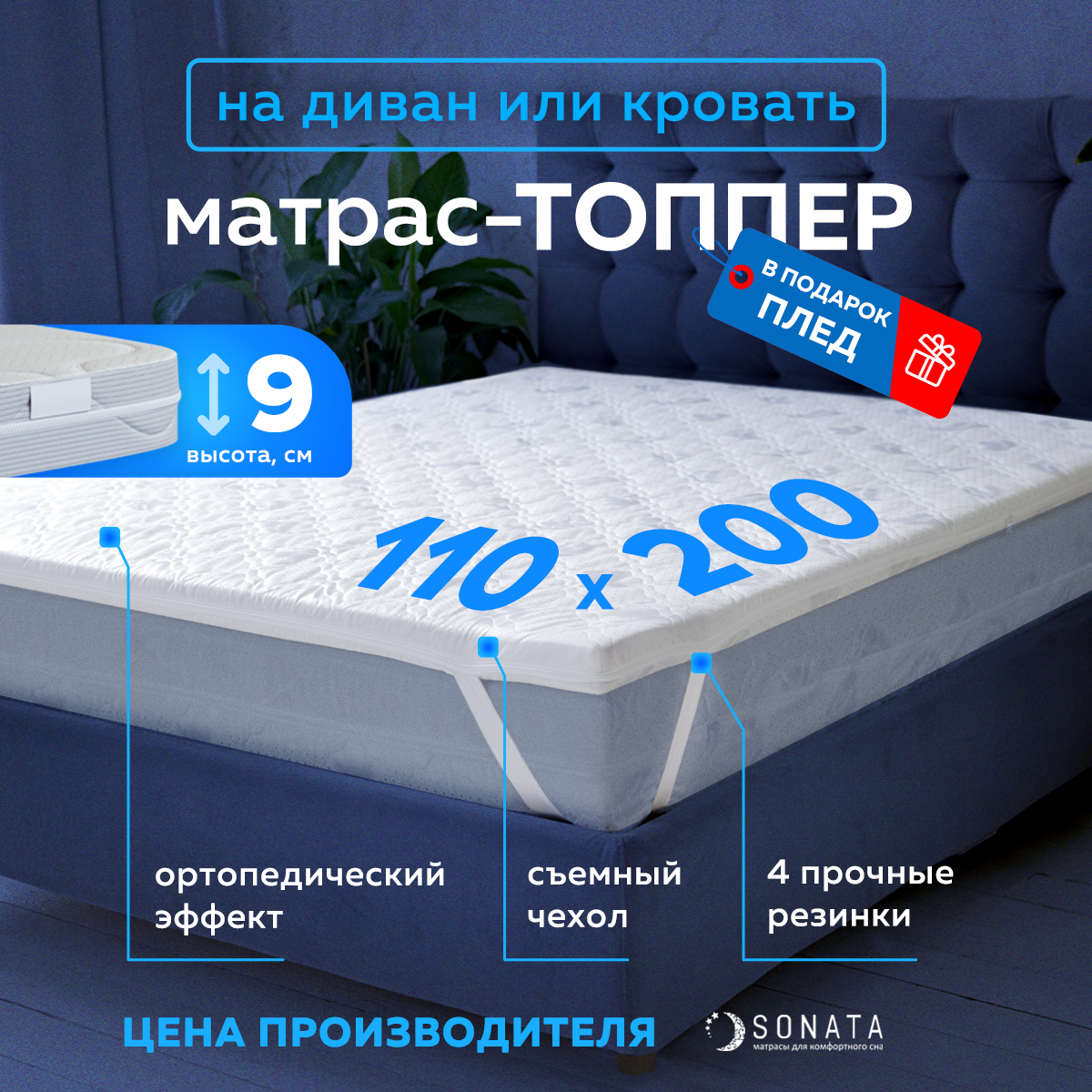 10 цен на Топпер матрас 110х200 см SONATA, Беспружинный, высота 9 см, Съемный чехол, Плед в подарок