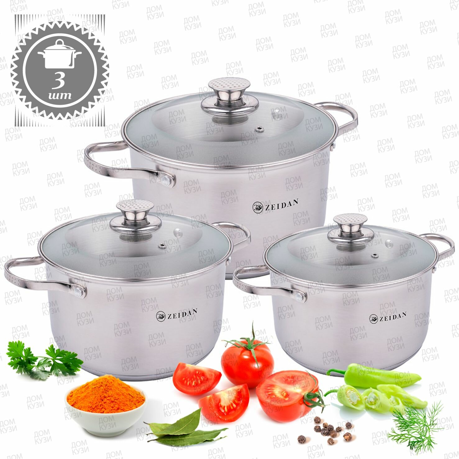 10 цен на Кастрюли в наборе Zeidan из нержавеющей стали со стеклянной крышкой 2 л, 3 л и 4 л для всех видов плит
