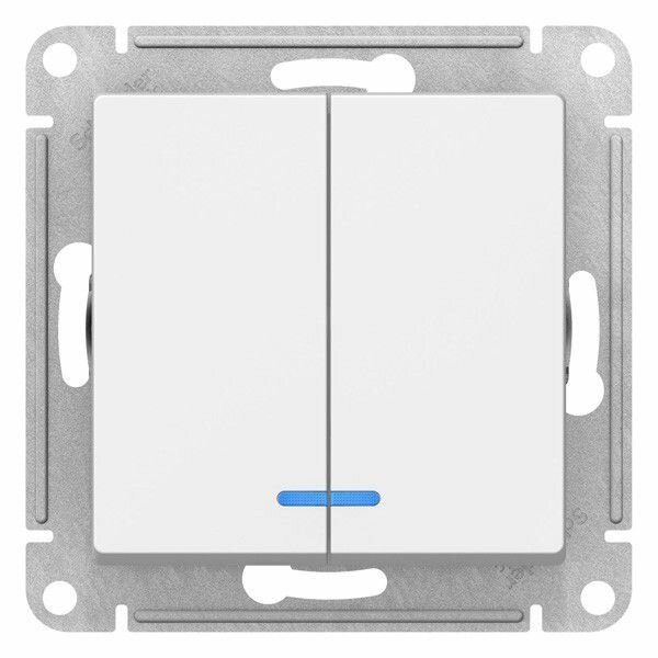 Выключатель двухклавишный с подсветкой Systeme Electric (Schneider Electric) AtlasDesign 10АХ, белый, глянцевый ATN000153 -1шт 710 ₽