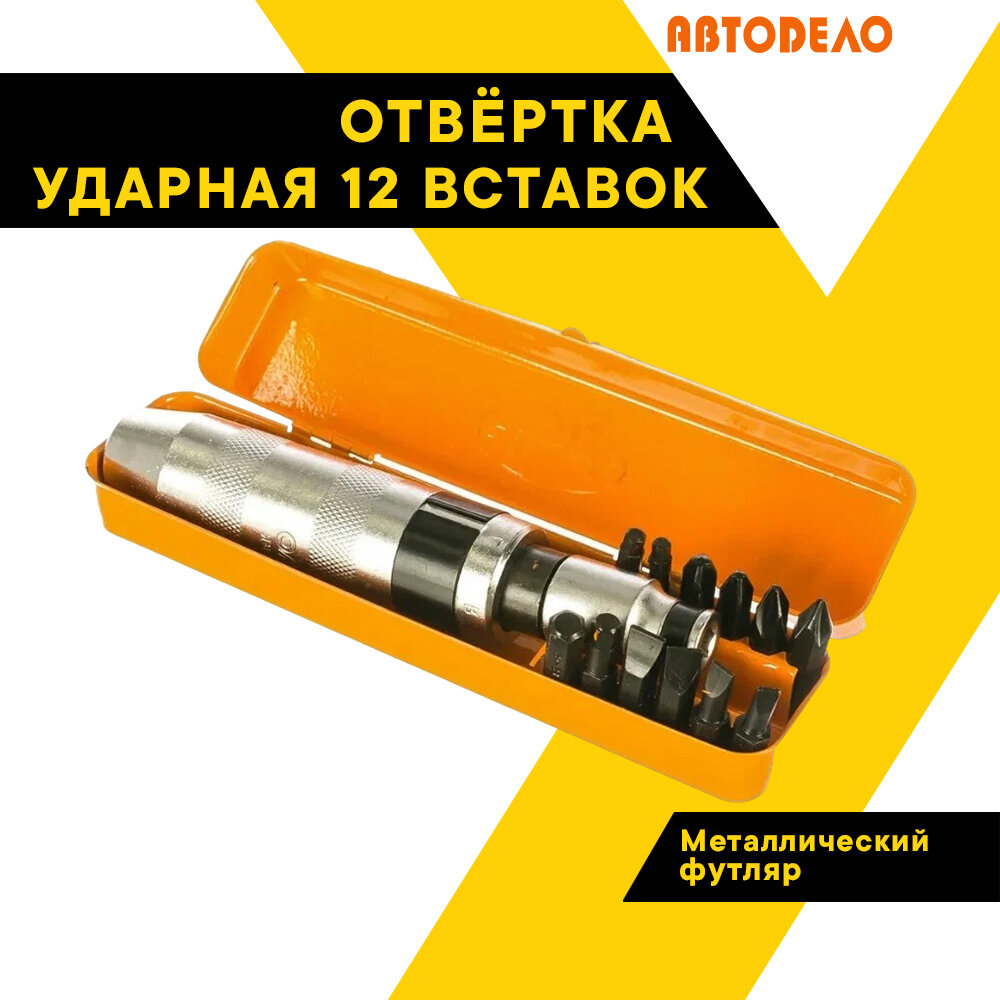 10 цен на Ударная отвертка, АвтоDело, 12 вставок Профессионал металлический футляр, 40013