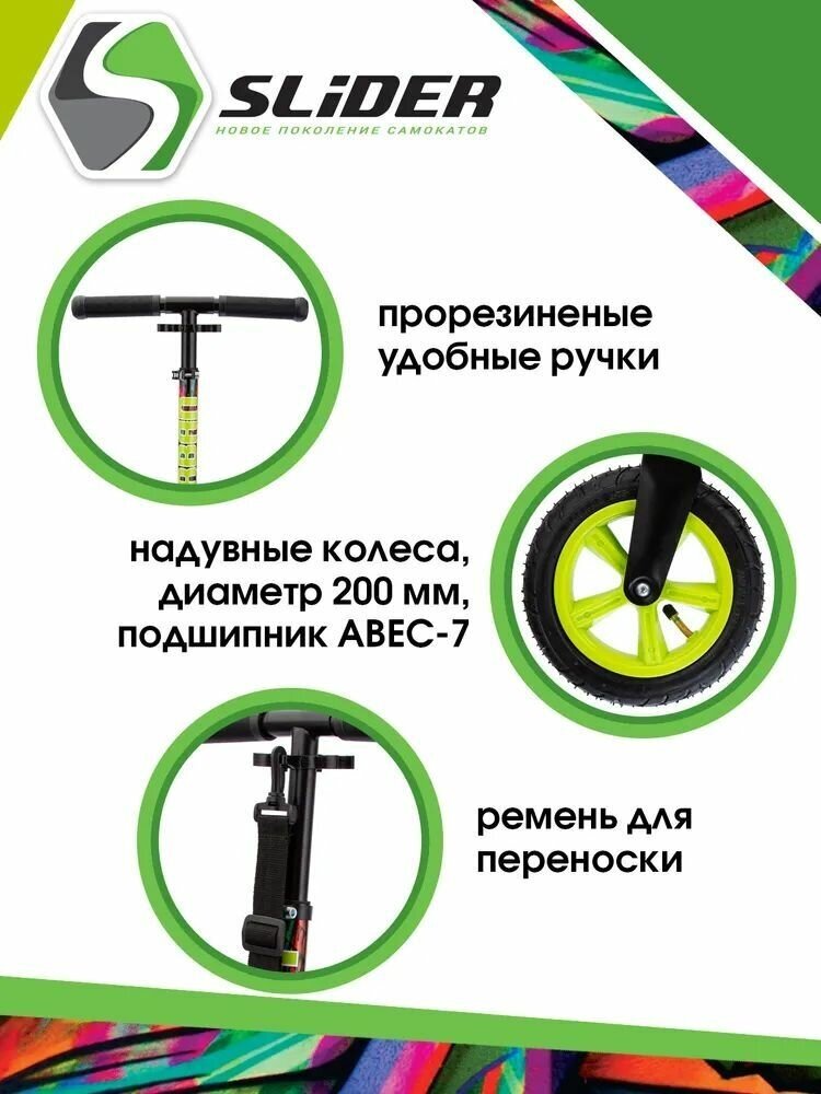 Отзывы на Городской самокат Slider SU3, надувные колеса 200 мм, зеленый/черный