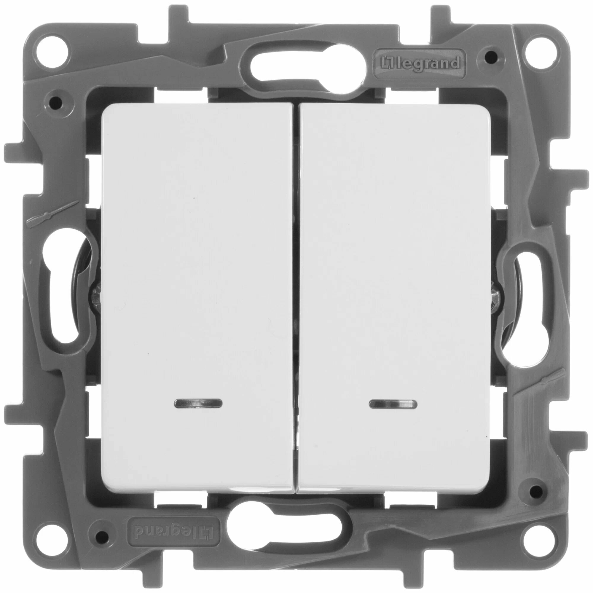 ETIKA Переключатель двухклавишный с подсветкой белый автоматические зажимы 10AX. 672216 LEGRAND