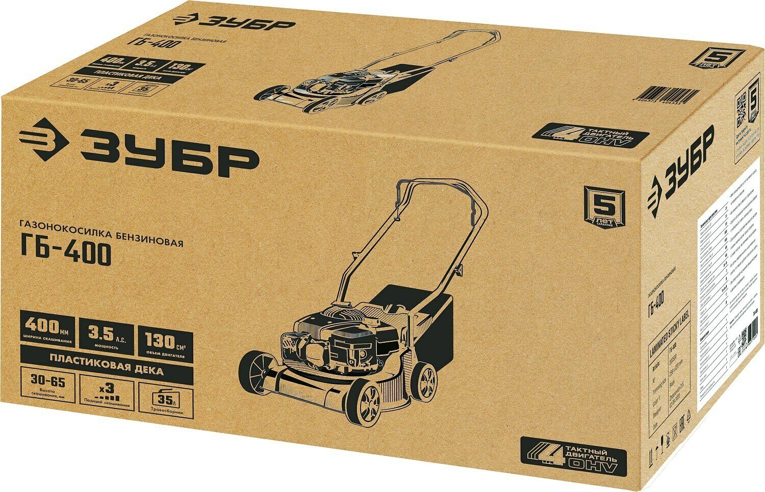 ЗУБР 2.6 кВт, 3.5 л.с., 400 мм, газонокосилка бензиновая ГБ-400 Мастер информация: