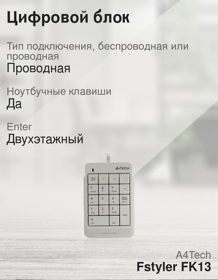 Числовой блок A4Tech Fstyler FK13, белый, USB, slim, для ноутбука информация: