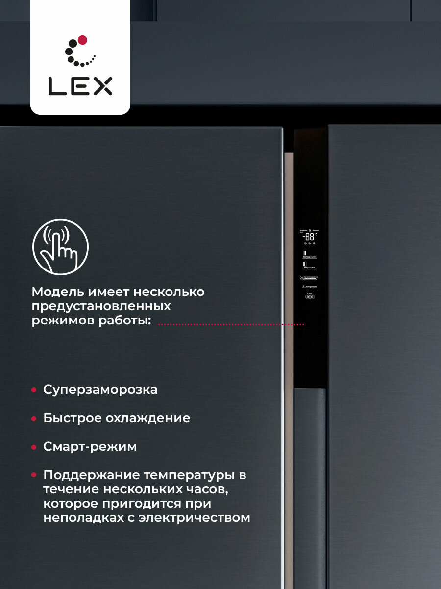 Холодильник двухкамерный LEX LSB530SLGID Total NoFrost, Side by Side, инверторный серебристый 99 070 ₽