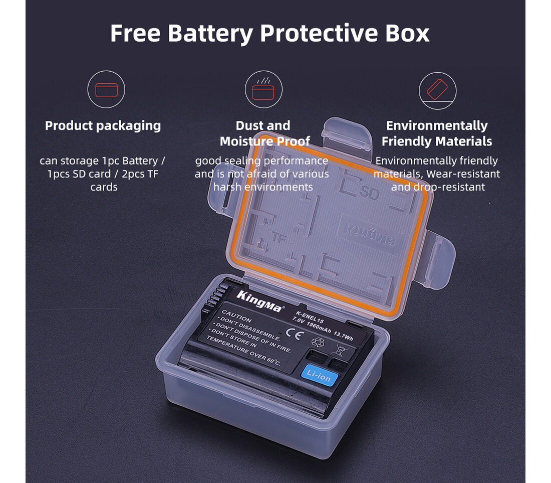 Аккумулятор Kingma EN-EL15, с защитным кейсом, 1960 мАч информация: