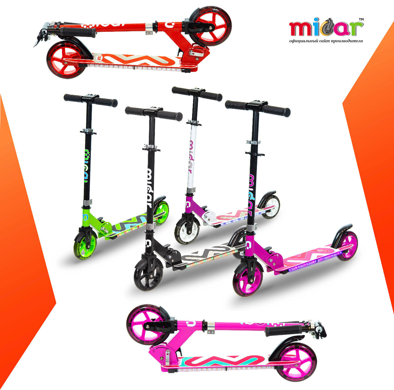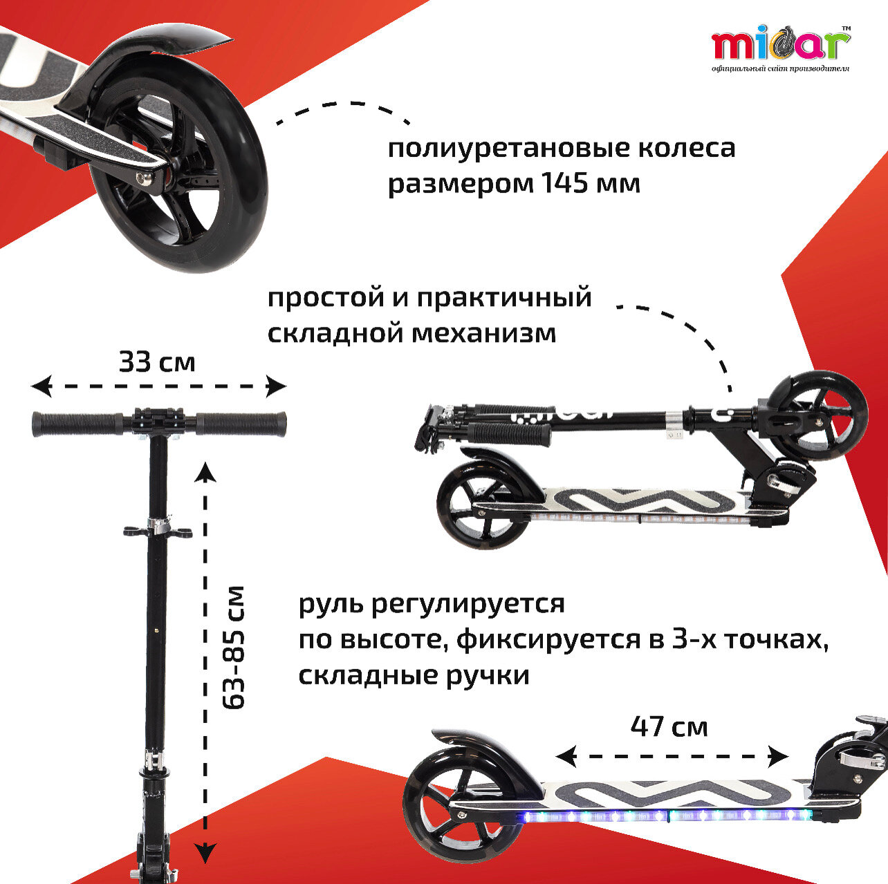 Отзывы на Детский двухколёсный самокат со светящимися колёсами и платформой Micar Flash 145 Чёрный
