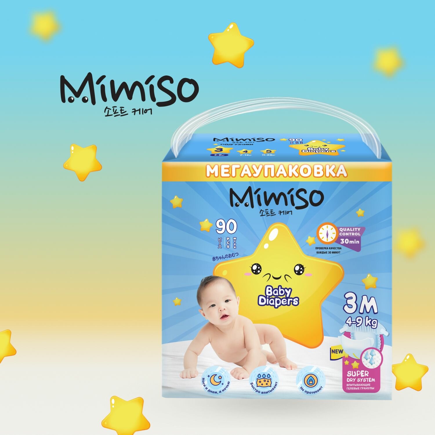 Подгузники детские 3 M размер 4-9 кг, 90 шт, MIMISO информация: