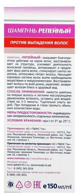 Шампунь «911 Репейный» от выпадения волос и облысения, 150 мл информация: