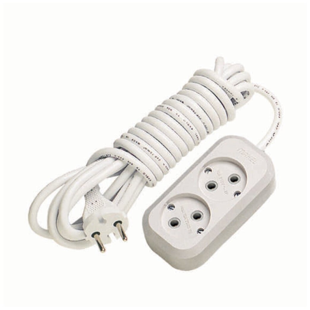 Удлинитель Makel 2 розетки 5 м метров длина 2 гнезда без заземления б/з Макел 2х0,75 ПВС электрический сетевой бытовой 2200 вт 220в белый, арт. MGP104