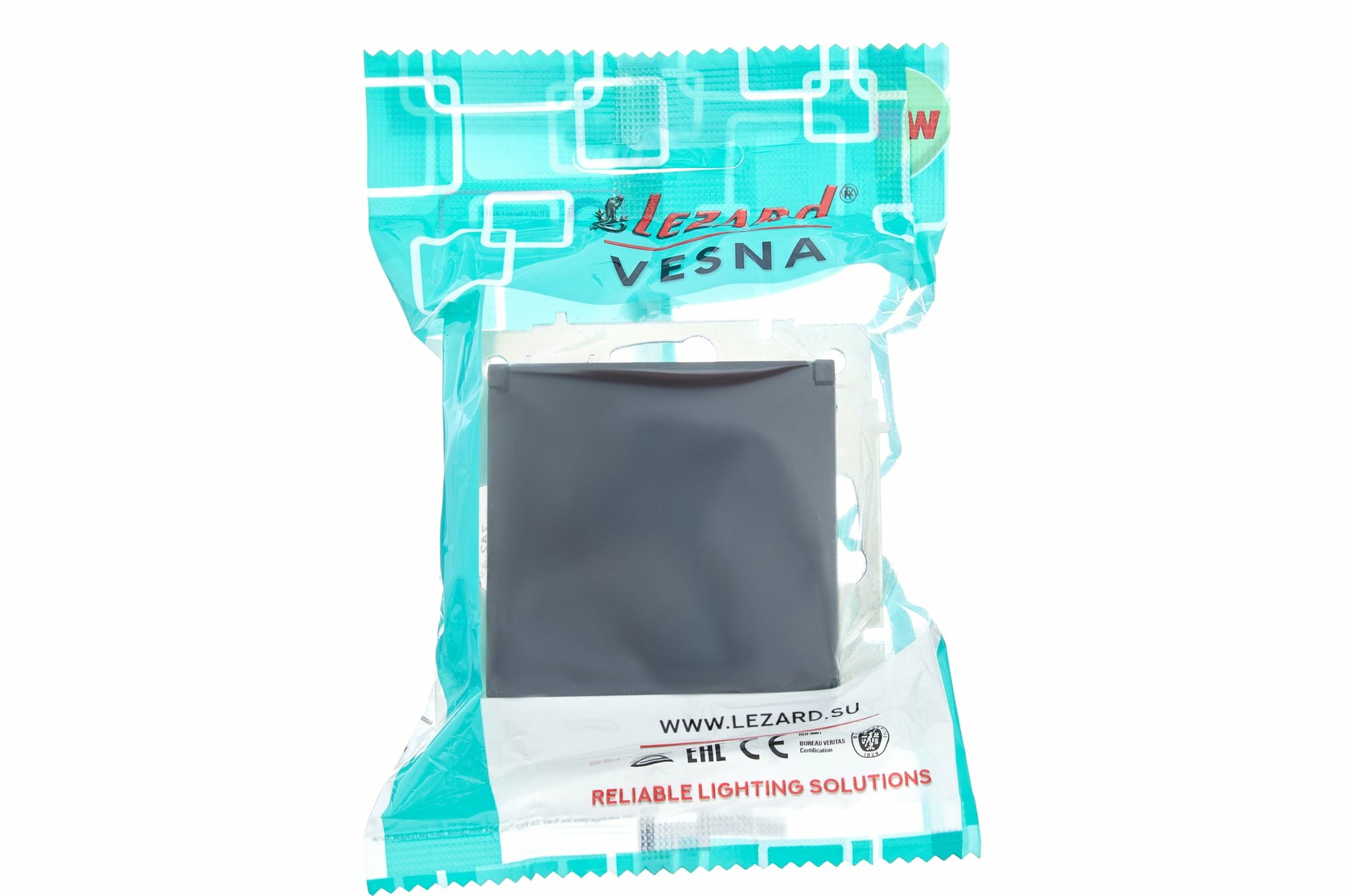 Розетка 1-м СП Vesna с заземл. с крышкой ПБТ механизм черн. бархат LEZARD 742-4288-123B информация:
