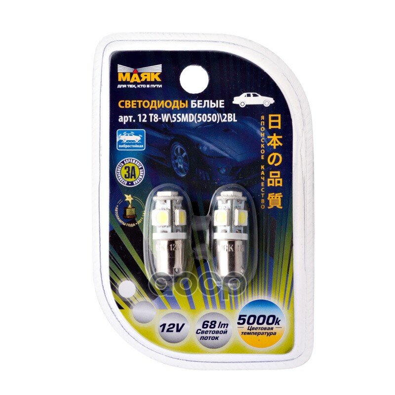 Лампа 12V Ba9s T8w 5 Диодов Smd White (Уп. 2 Шт.) Маяк 12-T8-W5smd2bl Маяк арт. 12-T8-W5SMD2BL