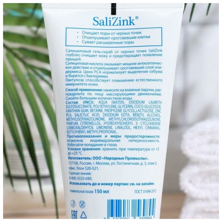 Salizink гель-скраб для лица Салициловый с цинком РСА и лактулозой от черных точек , 150 мл
