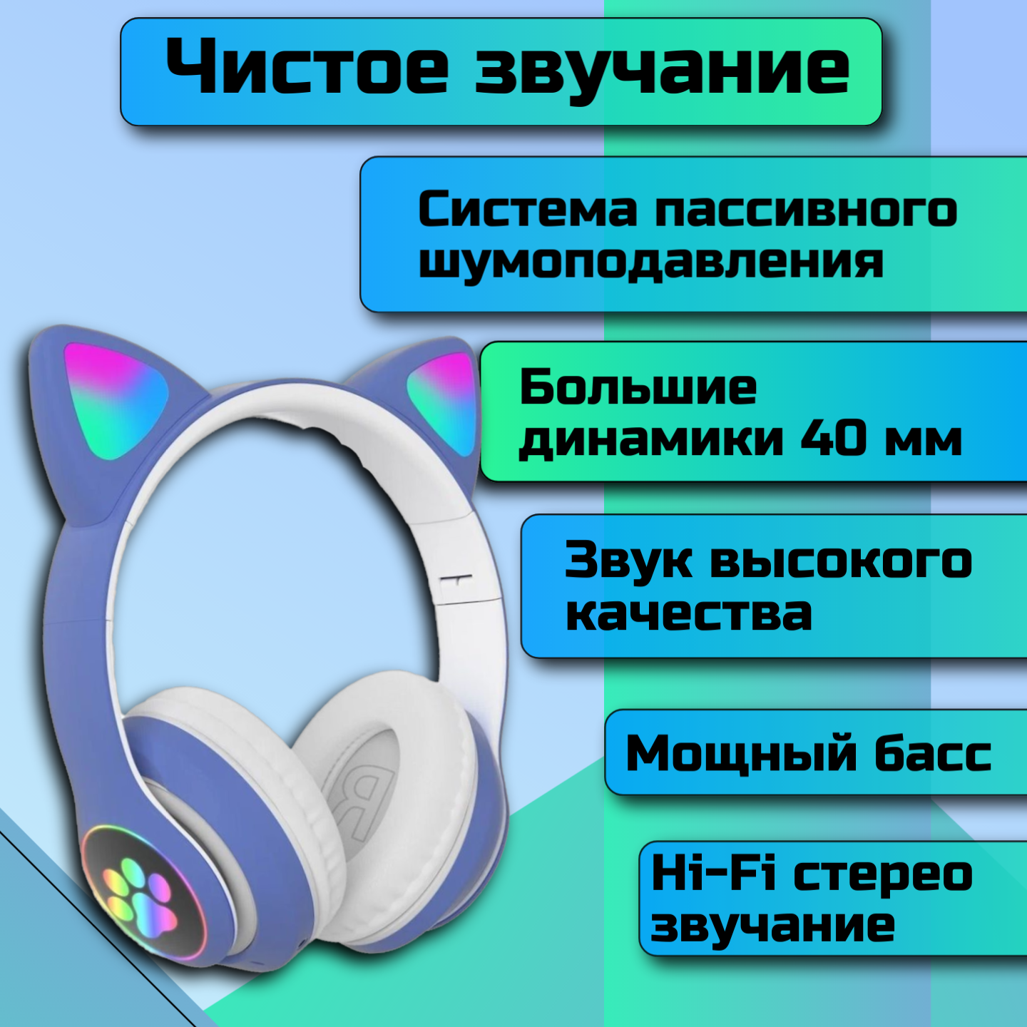 Отзывы на Наушники беспроводные с ушками гарнитура bluetooth cat STN-28 светящиеся ушки светло-синие