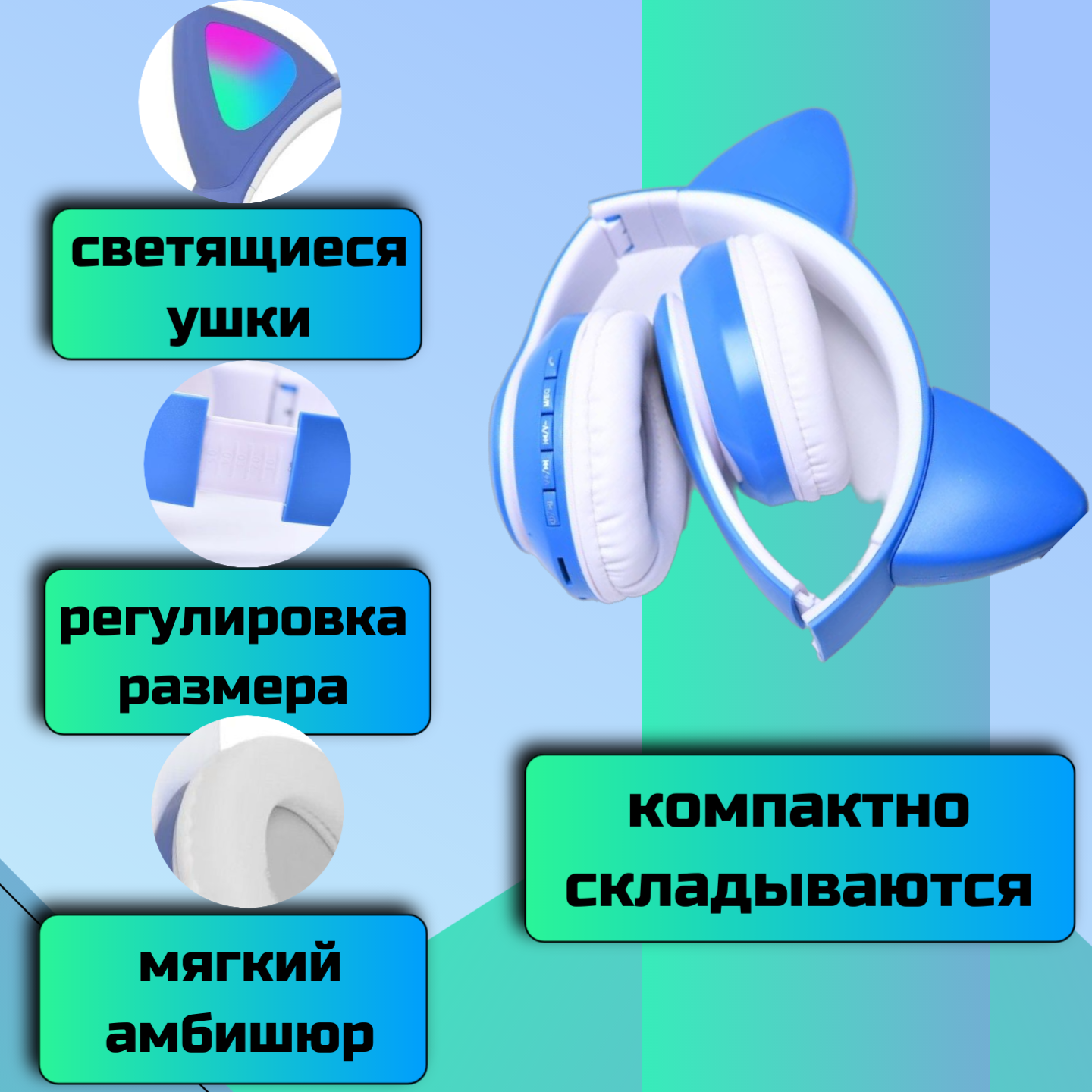Наушники беспроводные с ушками гарнитура bluetooth cat STN-28 светящиеся ушки светло-синие информация: