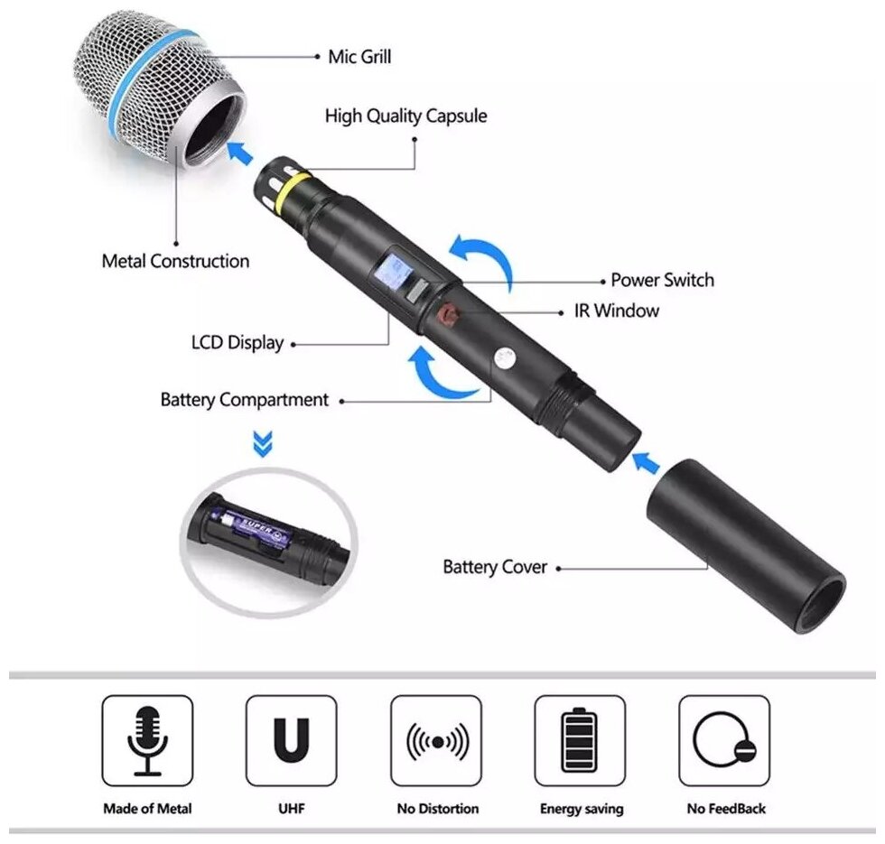 Профессиональная вокальная радиосистема MADMIC X-PRO - два высококачественных ручных микрофона, сменные частоты