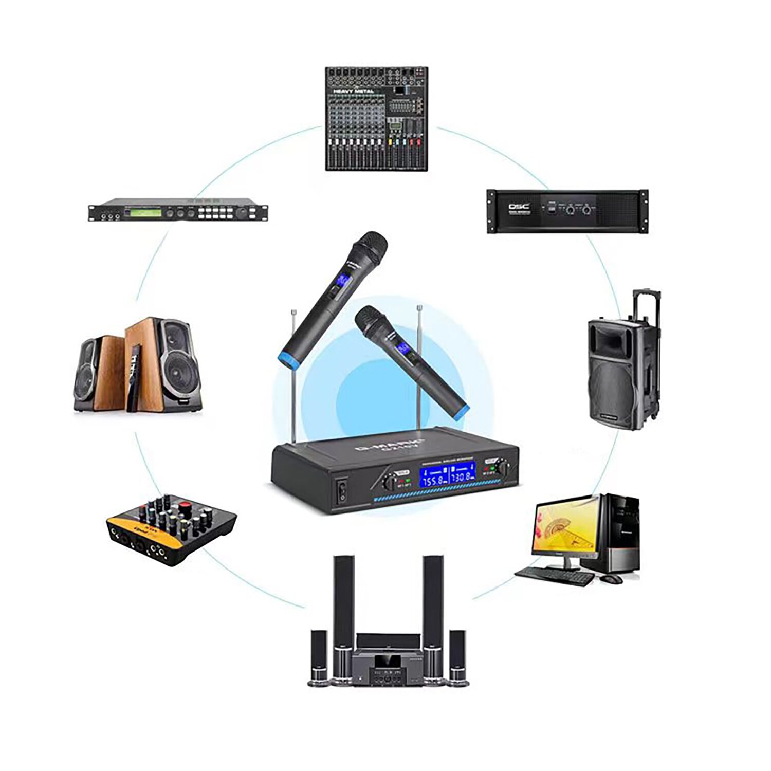 Набор беспроводных микрофонов G-MARK GLC440, 4 микрофона, 4 канала, беспроводная база / караоке-группа / микрофоны для мероприятия