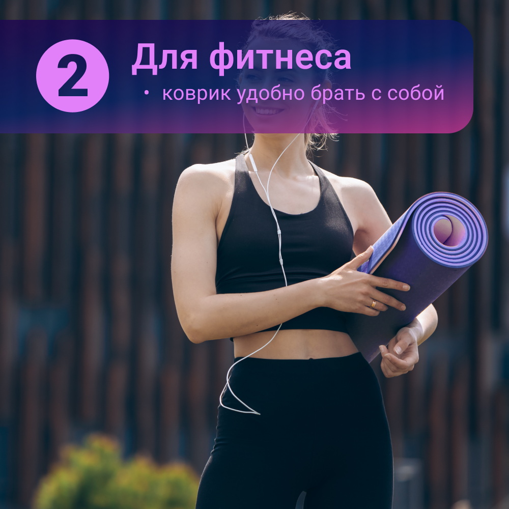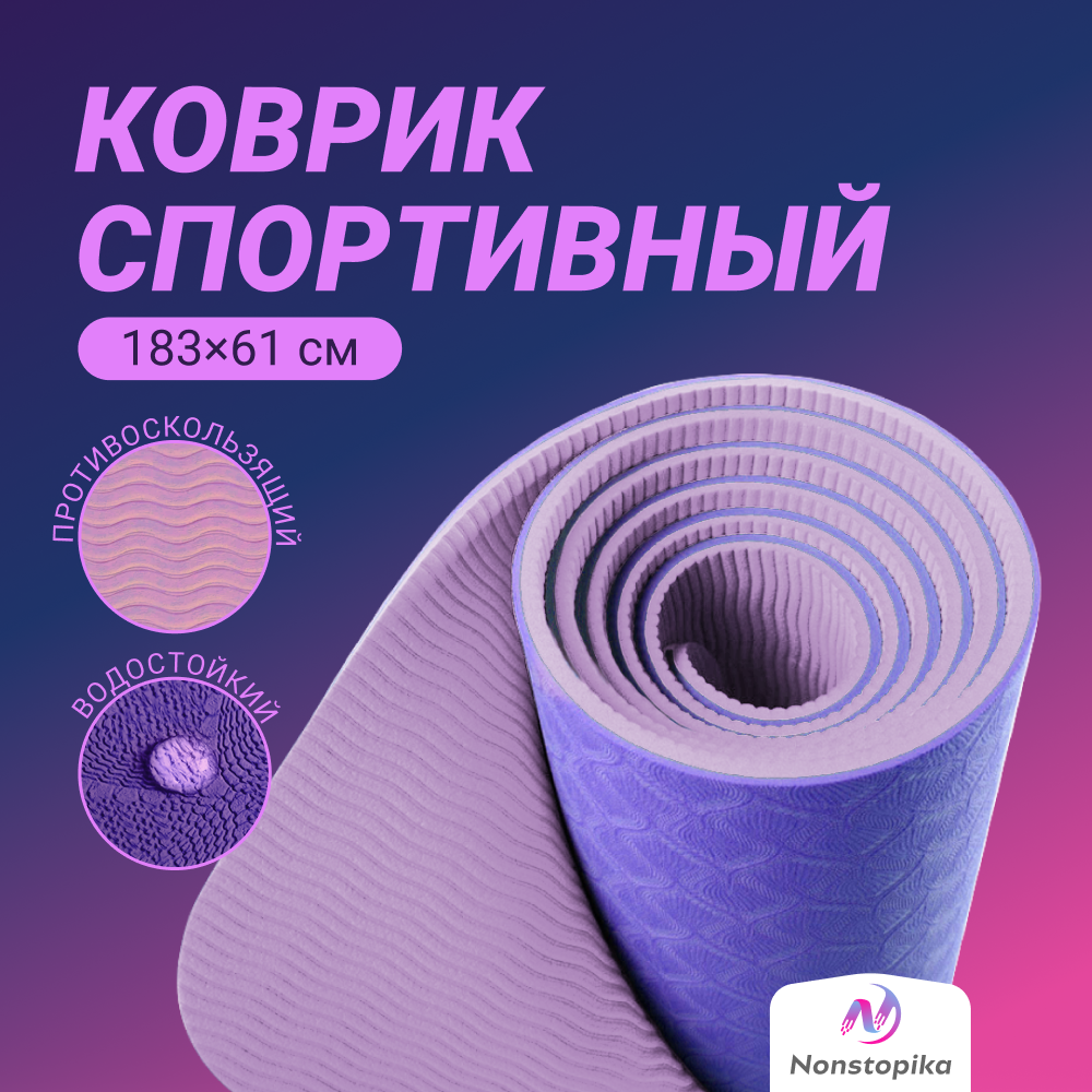 10 цен на Спортивный коврик Nonstopika Relax, для йоги и пилатеса, размер 183*61*0,6см, цвет фиолетовый (2 стороны)