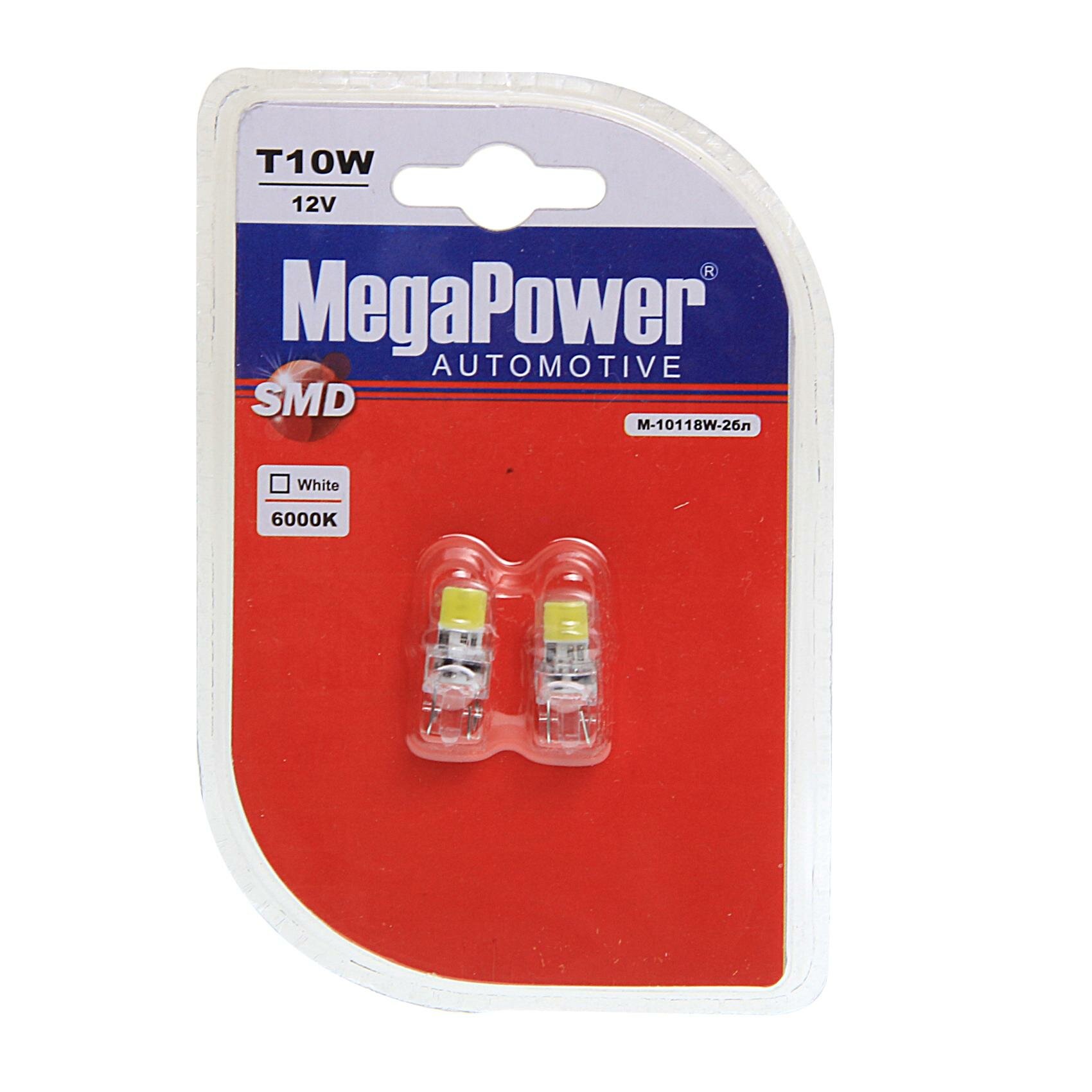 10 цен на Автолампа T10W (W2,1x9,5d) 2 LED COB WHITE блистер (2 шт) 6000K 180лм 12V MEGAPOWER