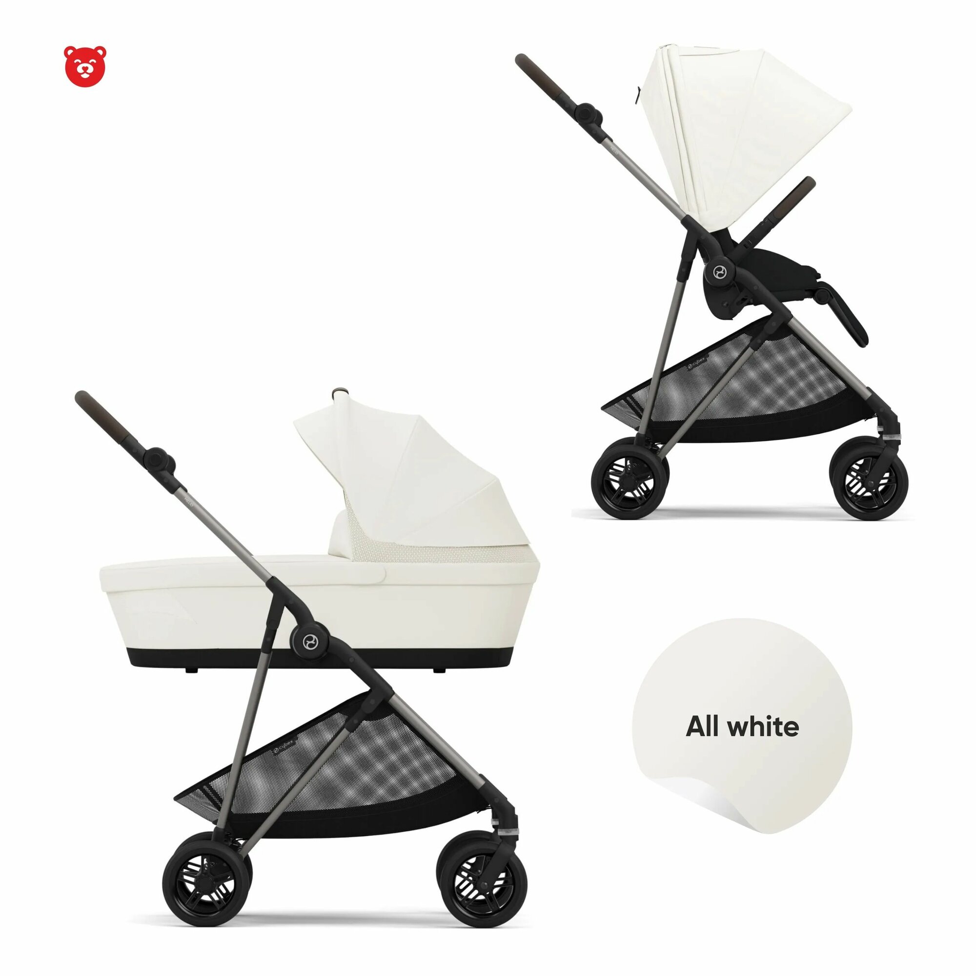 10 цен на Cybex Melio Детская коляска 2 в 1 All White + комплект аксессуаров c дождевиком