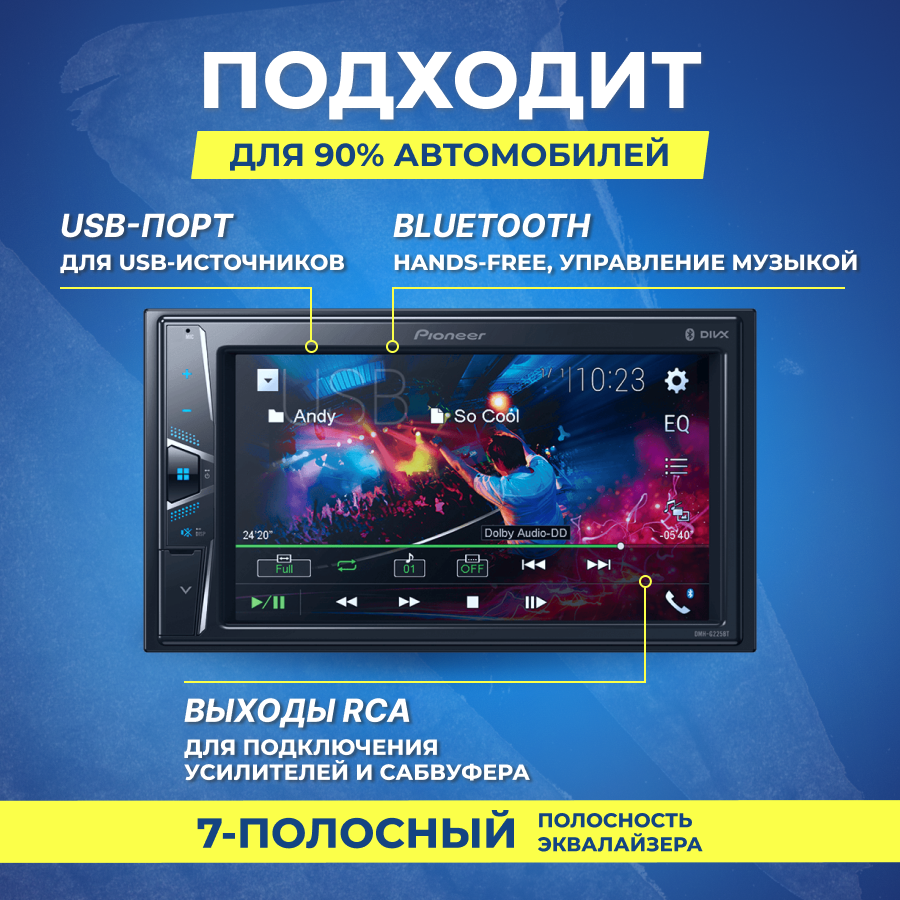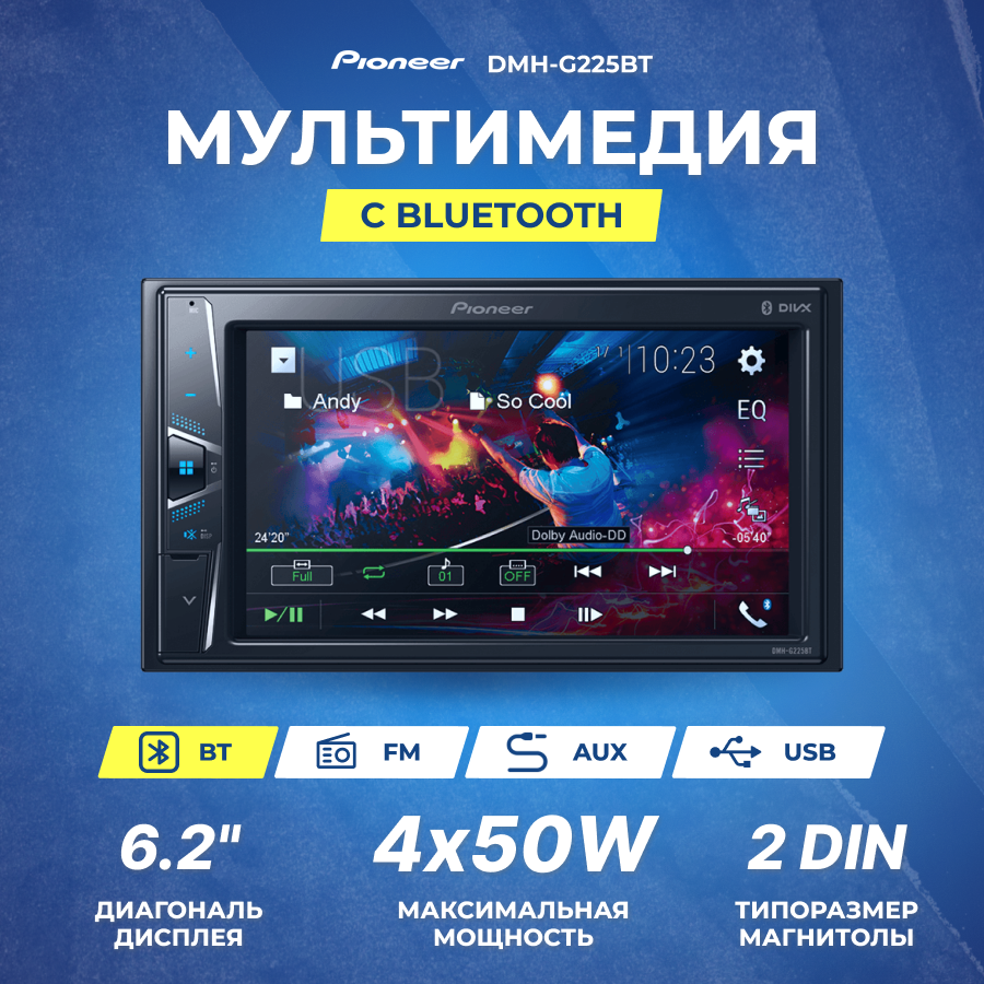 10 цен на Автомагнитола Pioneer Dmh-g225bt 2DIN 4x50Вт Dmh-g225bt .