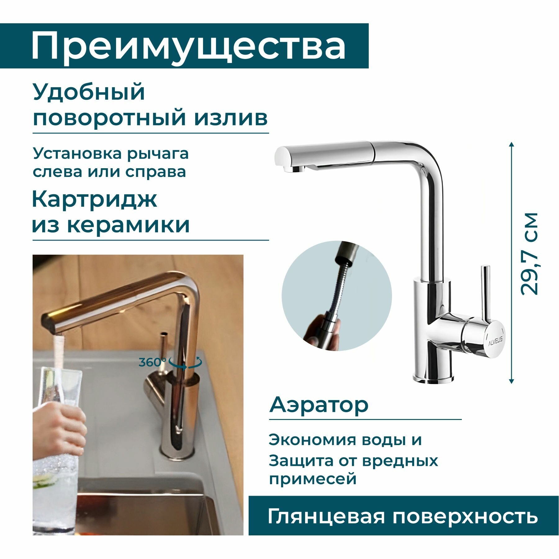 Смеситель кран для раковины для кухни и ванной с гибким выдвижным изливом ALVEUS Siros-P нержавеющая сталь хром информация: