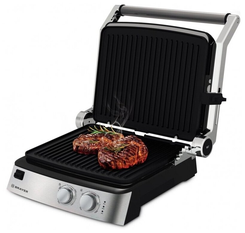 Отзывы на Электрогриль BRAYER BR2007, 2000 Вт, антипригарное покрытие, 29*23 см