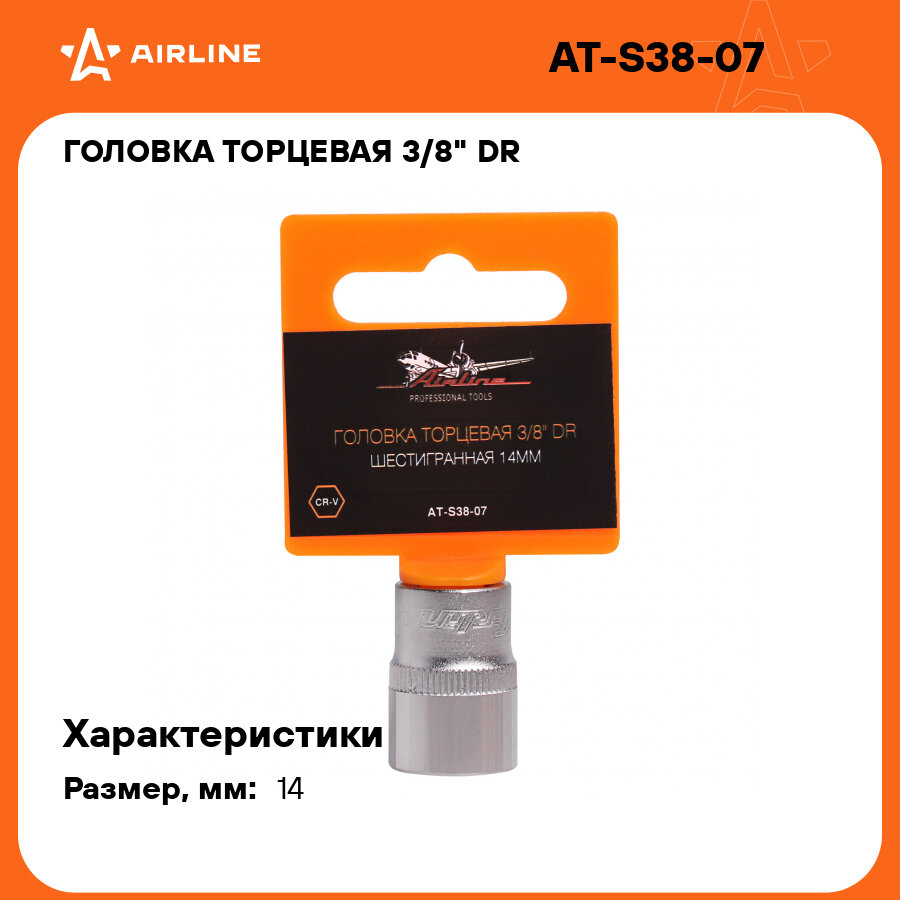 Головка Торцевая 3/8 Dr Шестигранная 14Мм В Пакете (At-S38-07) AIRLINE арт. ATS3807