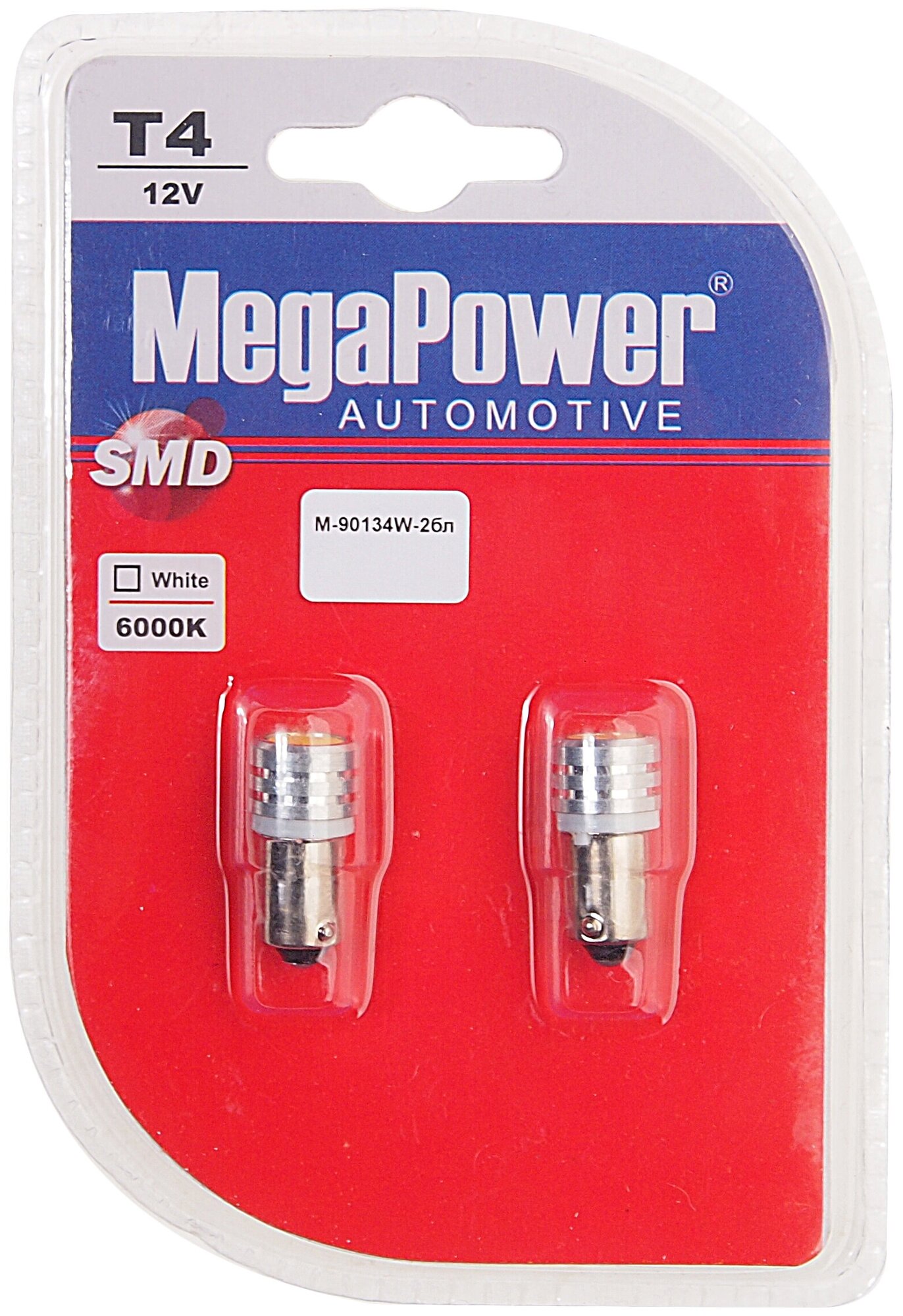 Лампа Светодиодная 12V T4w Ba9s 6000K Блистер (2Шт.) Megapower MEGAPOWER Automotive арт. 90134W-2бл информация: