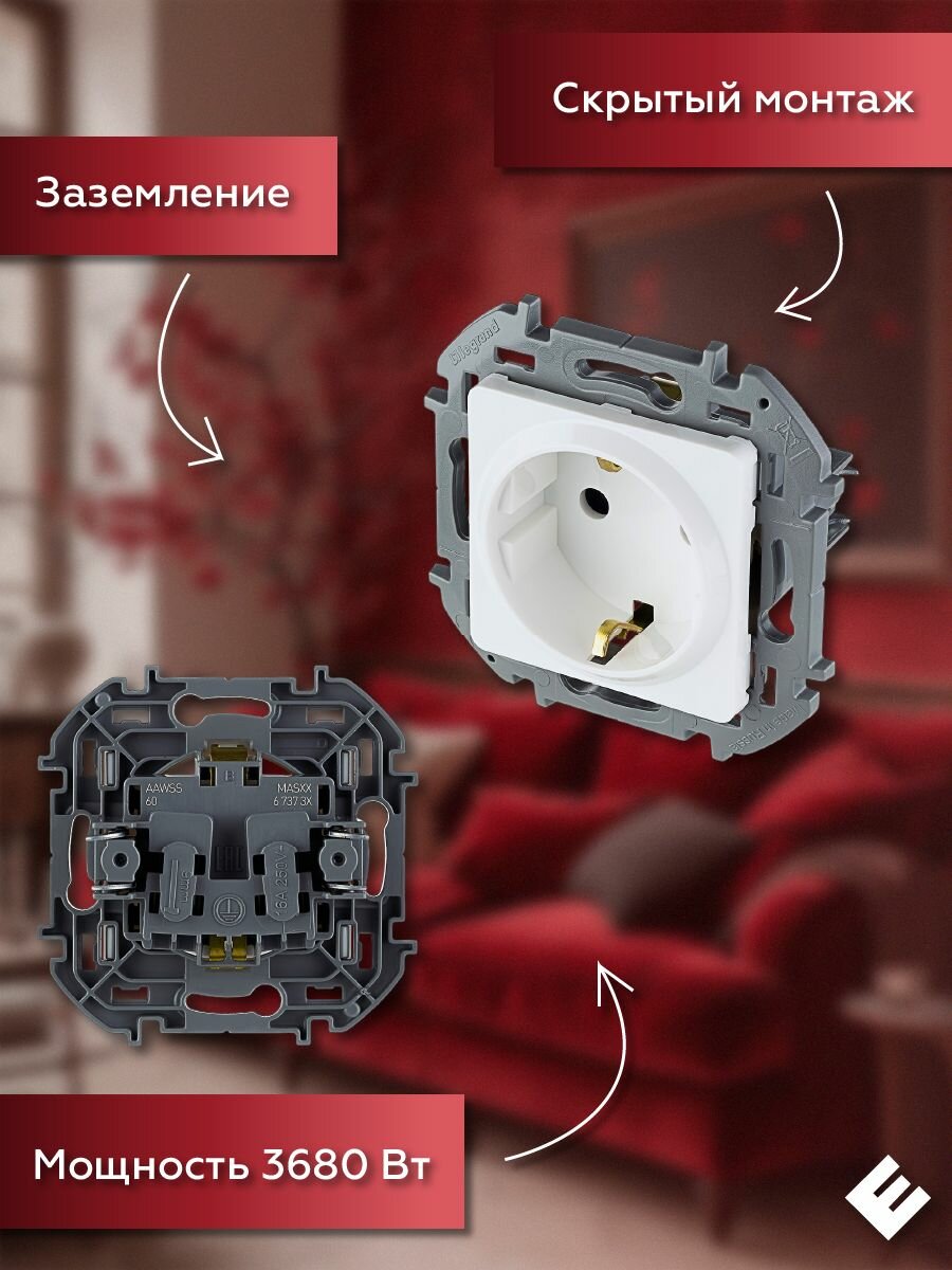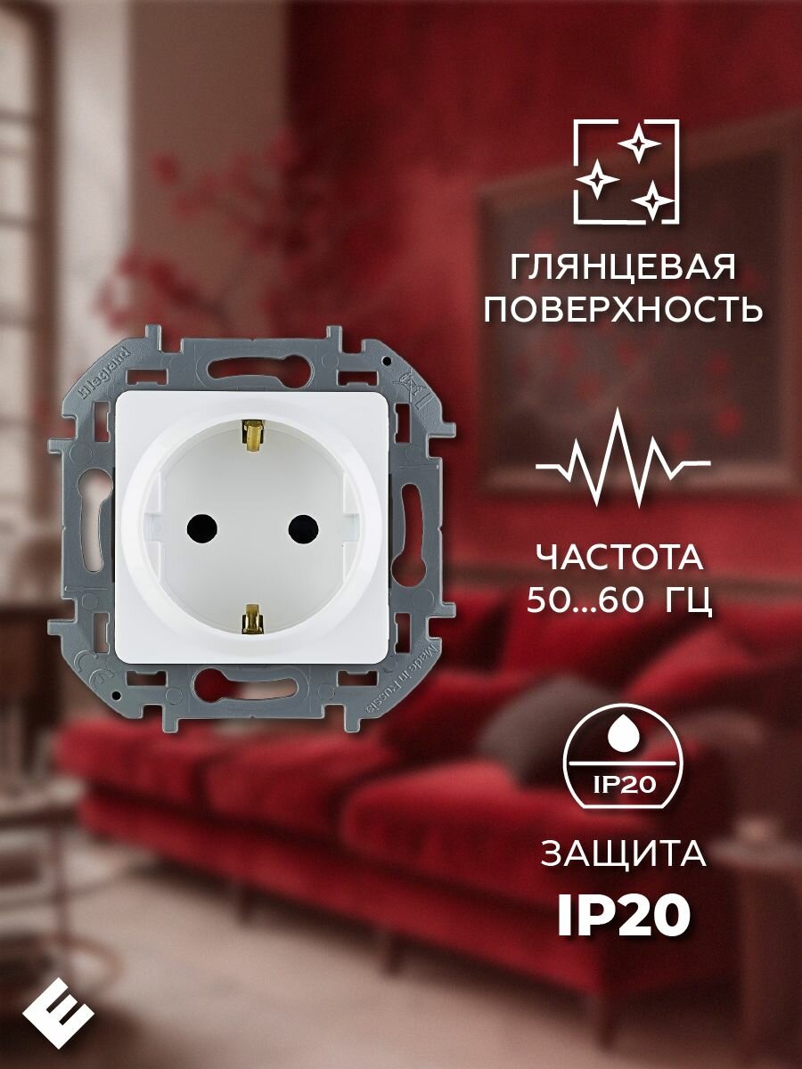 Отзывы на Розетка Белая, с заземлением со шторками немецкий стандарт 16А, Legrand INSPIRIA (комплект 9шт)