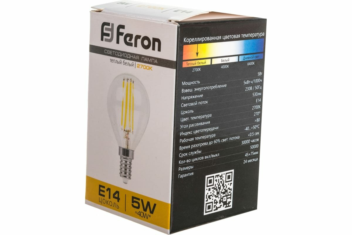 Лампа светодиодная LB-61 Шарик E14 5W 2700K, FERON 25578 (1 шт.)