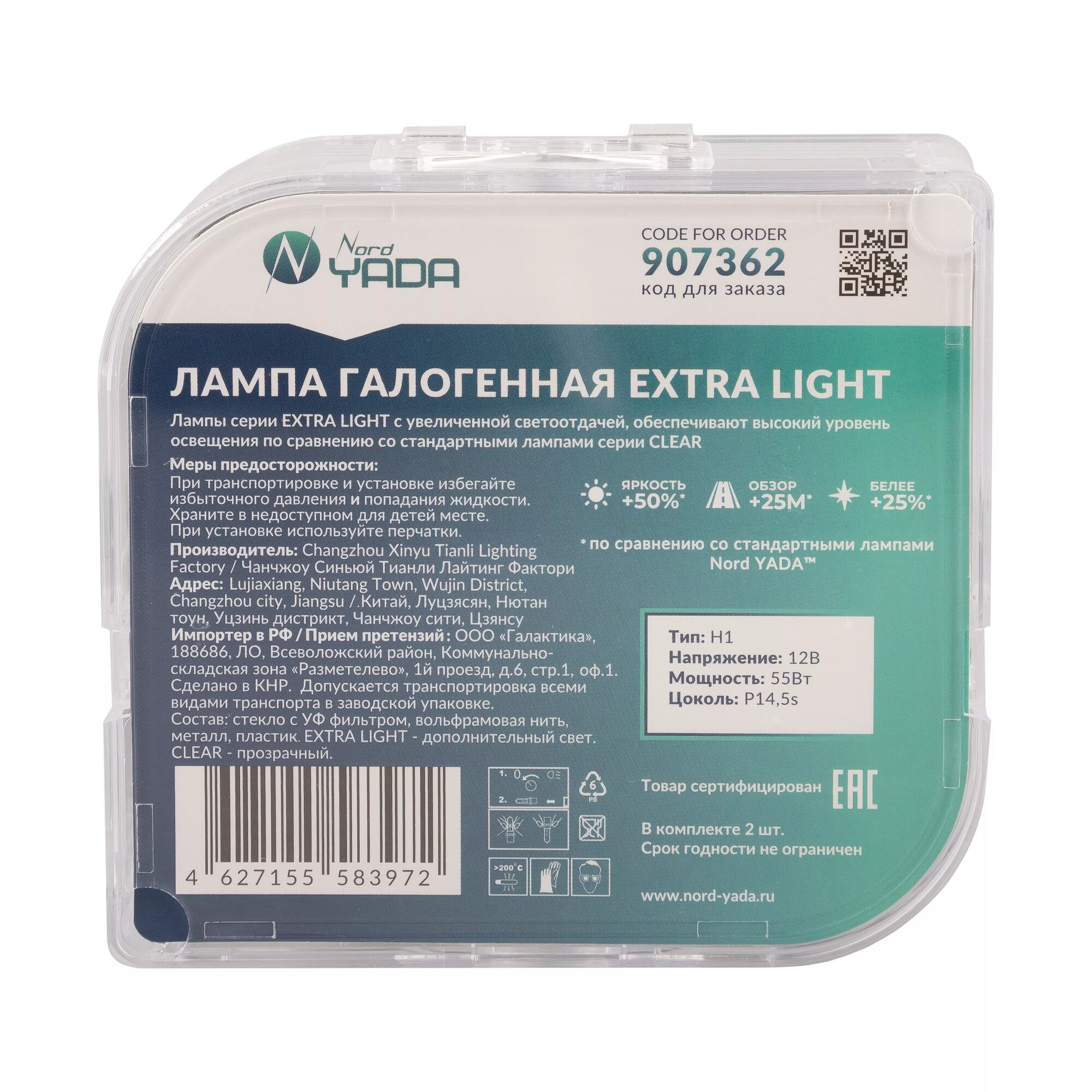 NORD YADA 907362 Лампа 12 В H1 55 Вт дальнего света Extra Light + 50% 2 шт. Nord Yada