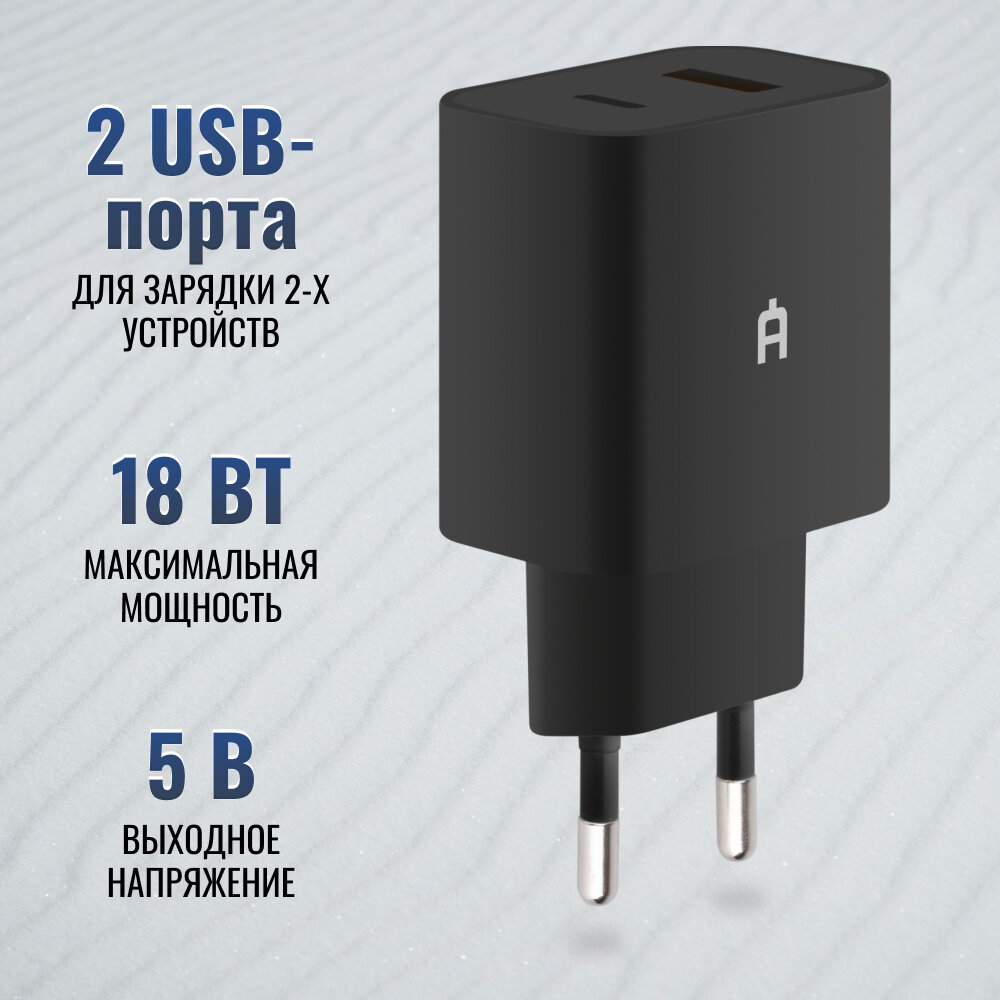 Быстрое сетевое зарядное устройство / блок питания Alteracs, USB — USB Type C, 18 Вт, Black 686 ₽