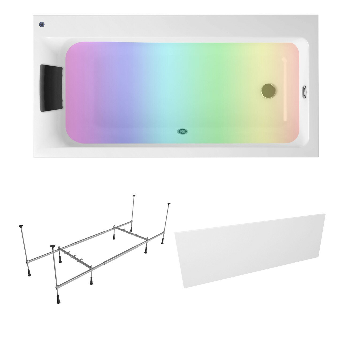 | Подробная комплектация | акриловая ванна Catani 170x80 см; усиленный металлический каркас с монтажным набором Complement; мягкий силиконовый подголовник; ультраплоский лицевой (фронтальный) экран Complement; хромотерапия на электроуправлении со стоп функцией; инструкция по монтажу и эксплуатации; гарантийный талон. |