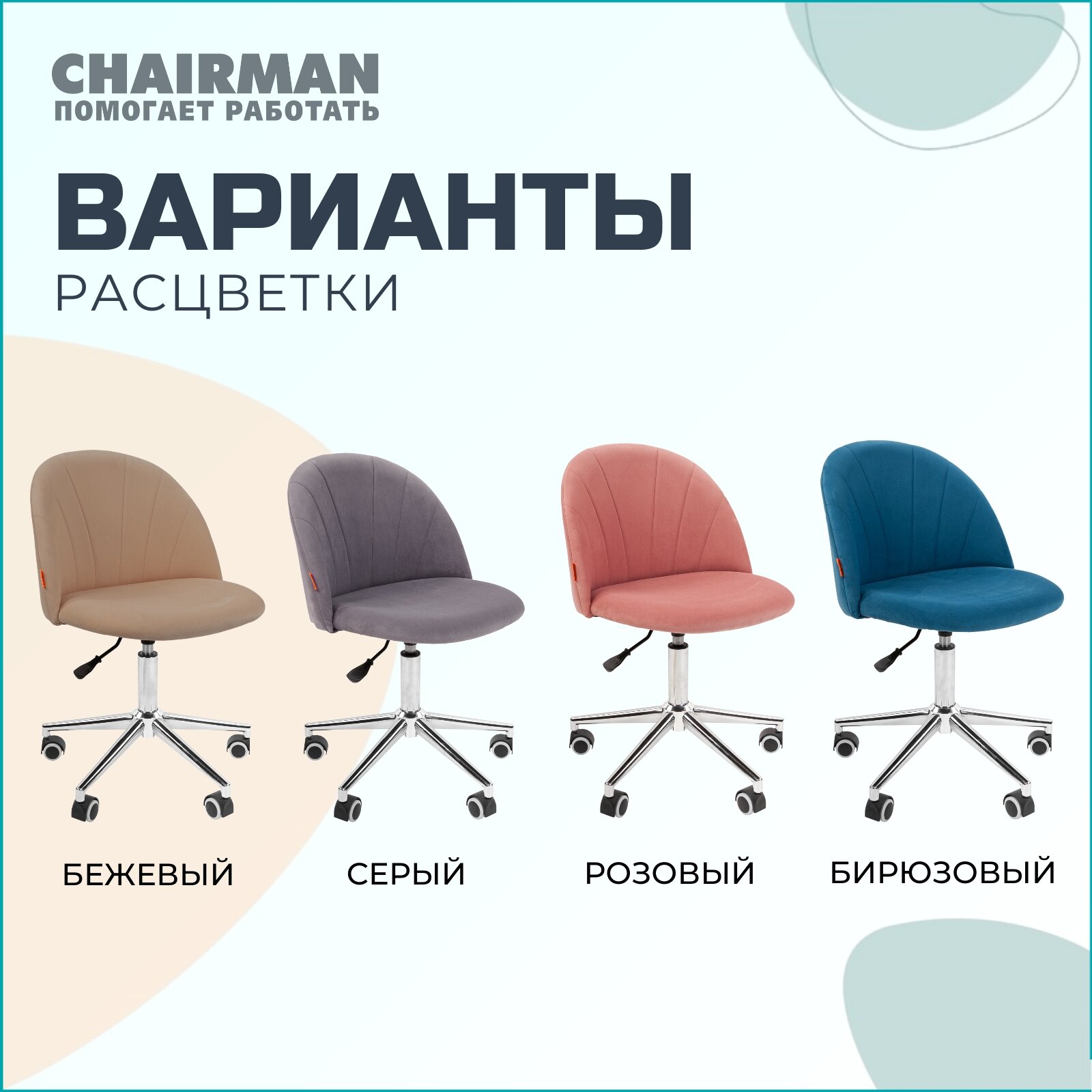 Компьютерное кресло для дома и офиса CHAIRMAN HOME 117, офисное кресло, ткань велюр, бирюзовый 8 990 ₽