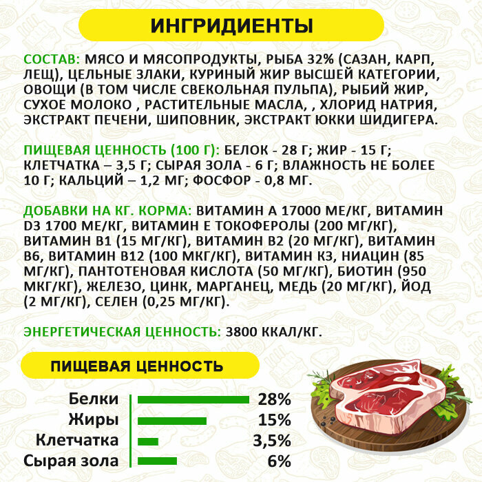 | Особые потребности | гипоаллергенный / для здоровья кожи и блеска шерсти / при чувствительном пищеварении |