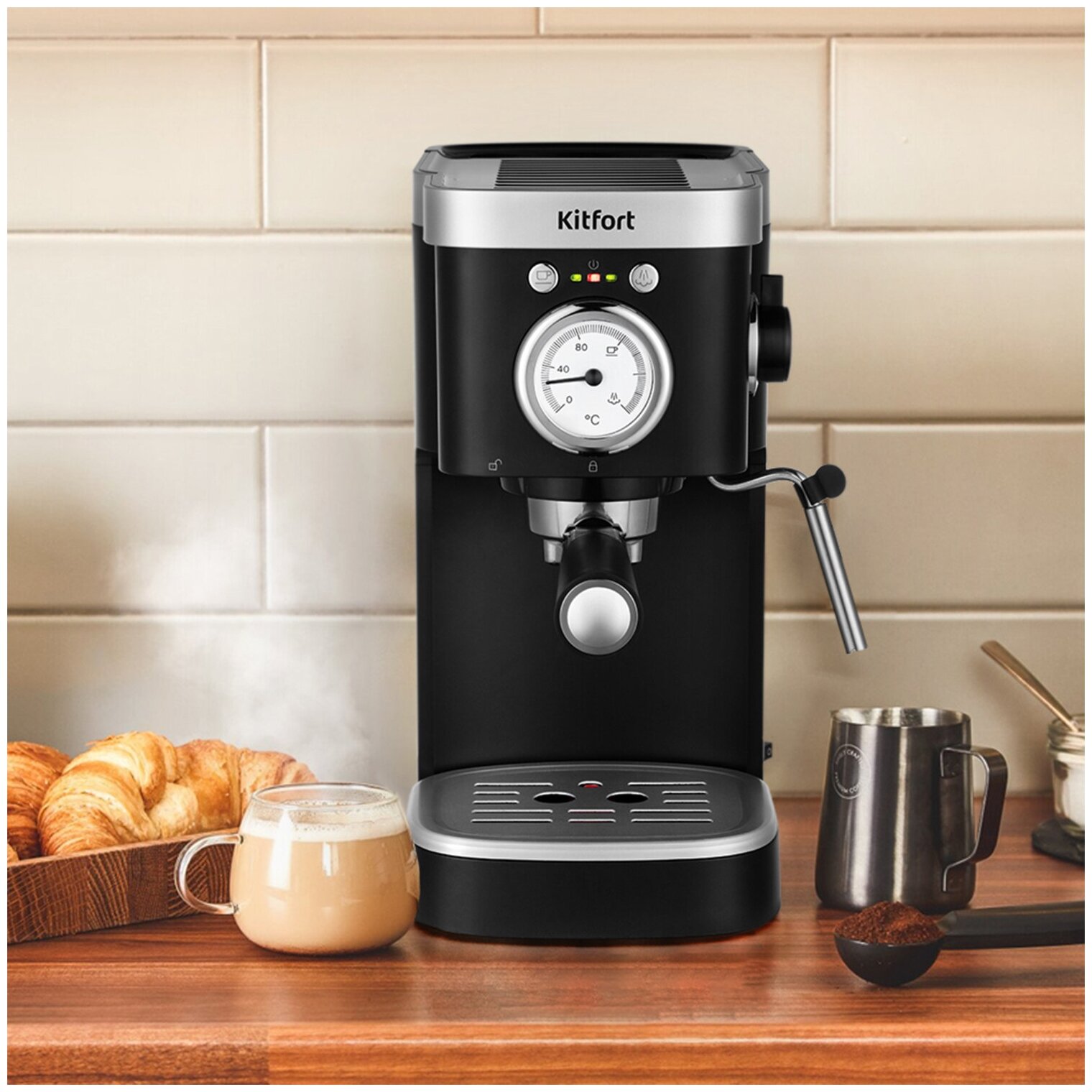 10 цен на Кофеварка рожковая Kitfort КТ-788 1450Вт черный/серебристый
