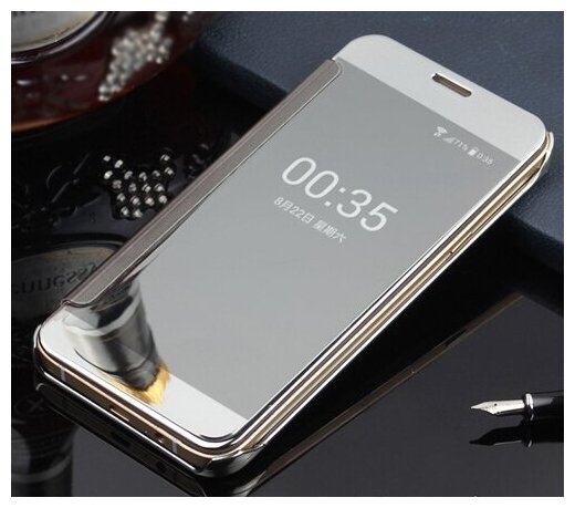 Отзывы на Чехол-книжка MyPad для Samsung Galaxy J5 (2017) SM-J530F с дизайном Clear View Cover с полупрозрачной пластиковой крышкой с зеркальной поверхностью серебристый