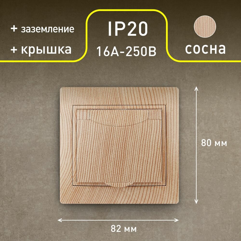 Розетка Intro Plano 1-203-11 с заземлением с крышкой со шторками скрытой установки 16А 250В сосна информация: