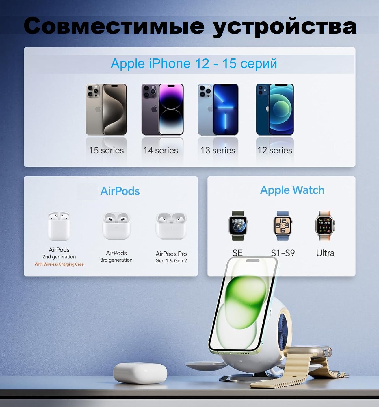 10 цен на Зарядная беспроводная док станция MagSafe 3 в 1 с подсветкой