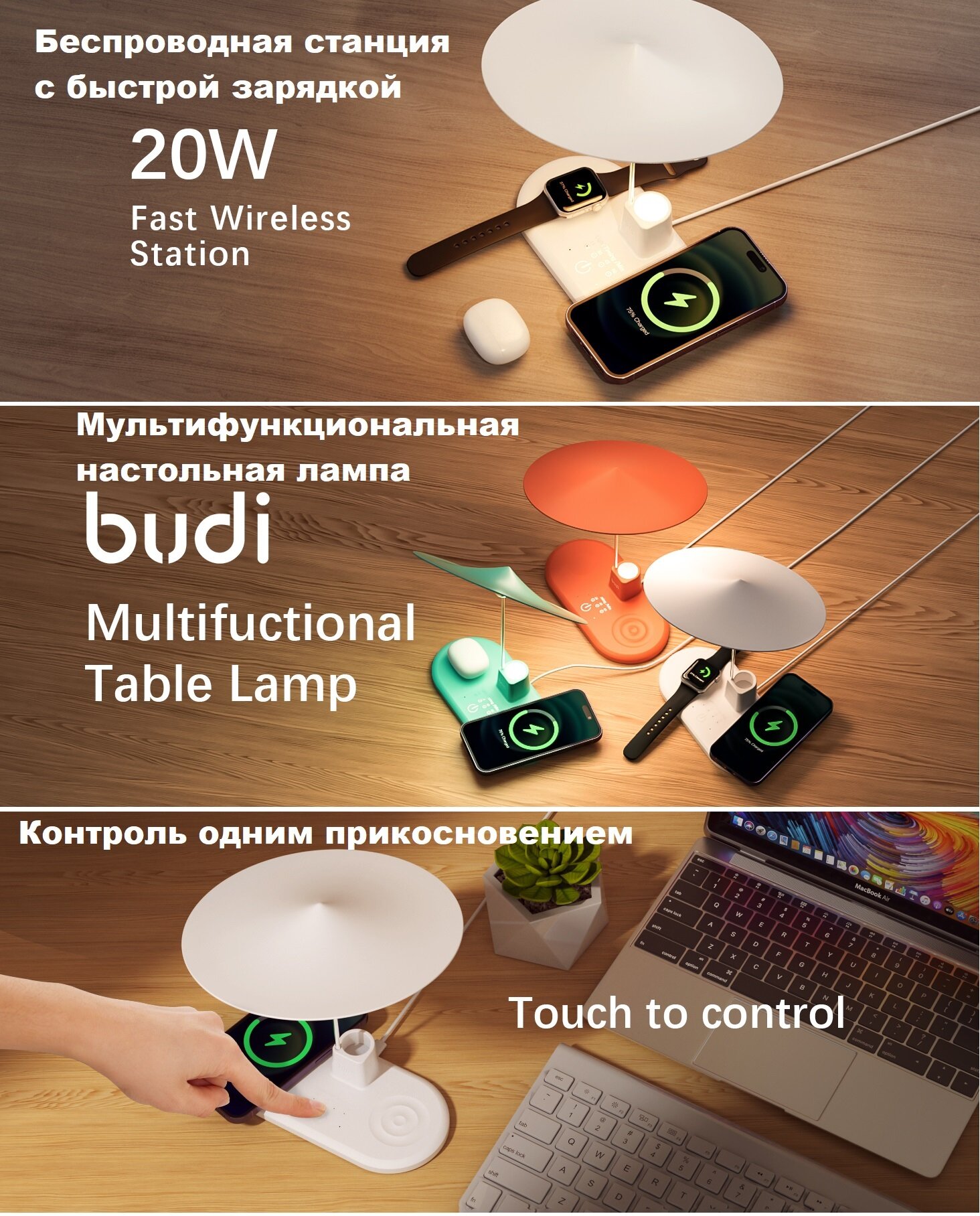 Отзывы на Док станция зарядная беспроводная 3 в 1 с ночником и таймером 20 Вт белая