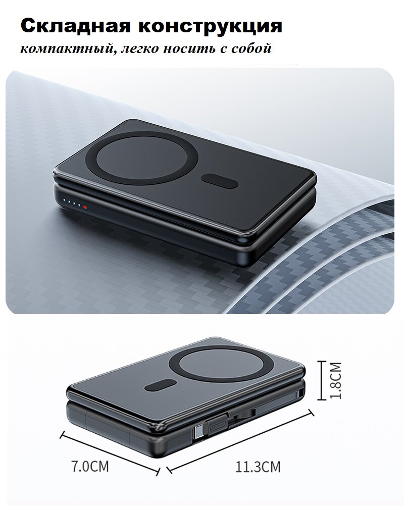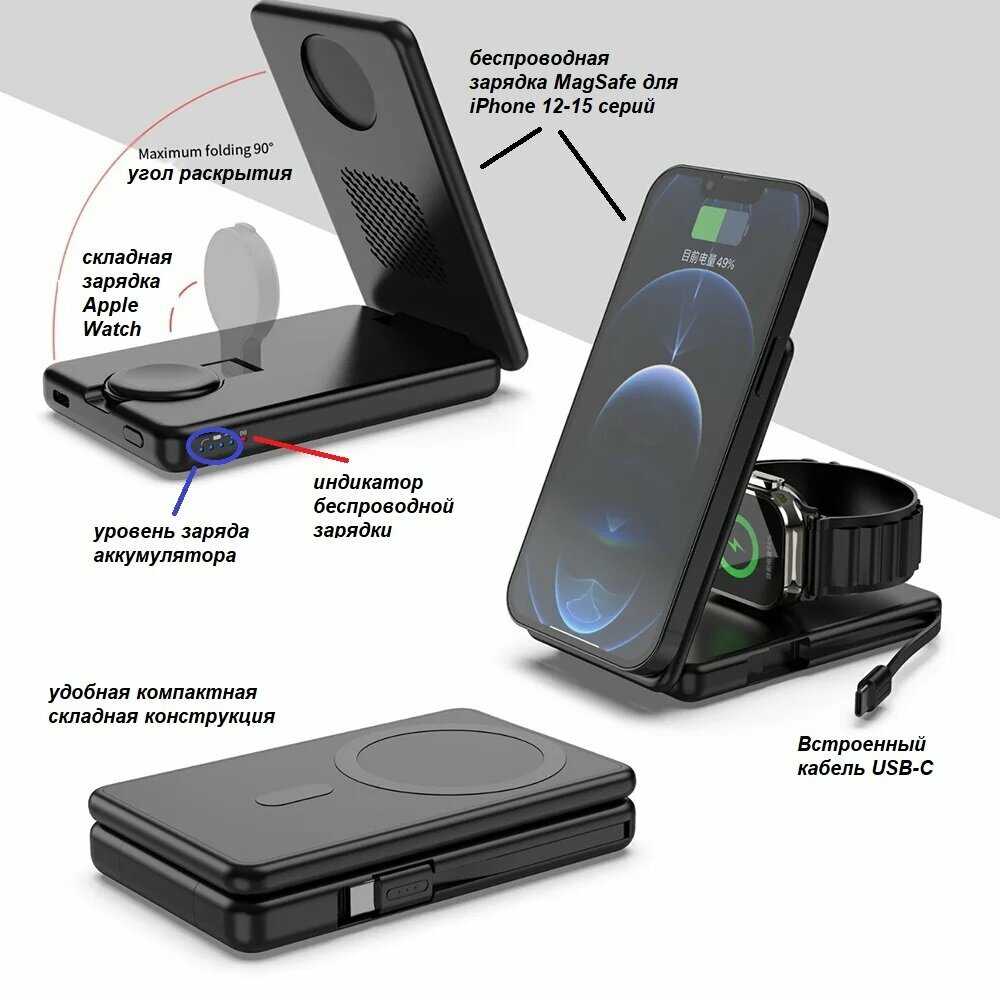 Зарядная беспроводная станция 3 в 1 со встроенным аккумулятором 5000 мАч информация:
