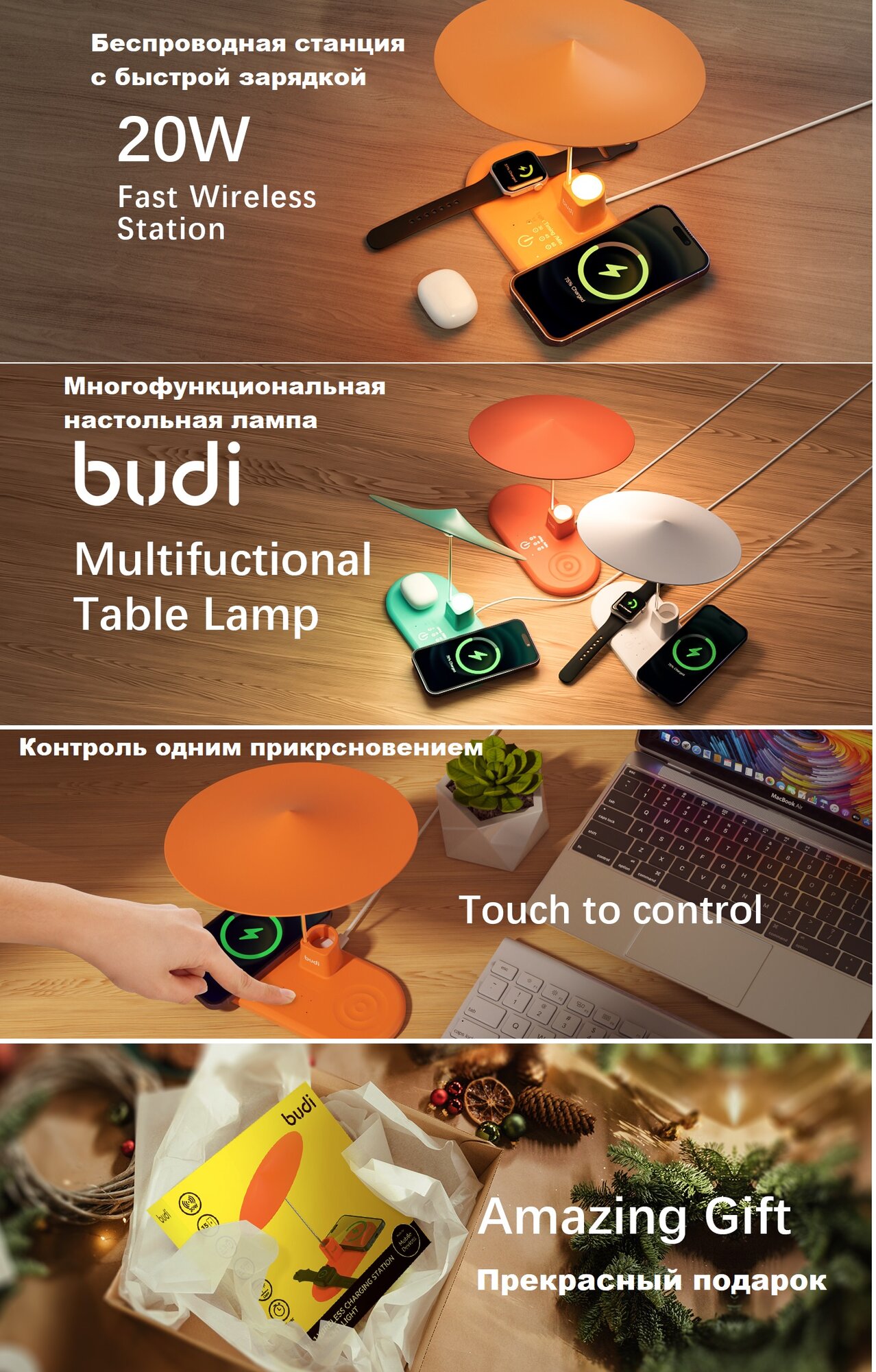 Отзывы на Док станция зарядная беспроводная 3 в 1 с ночником и таймером 20 Вт оранжевая