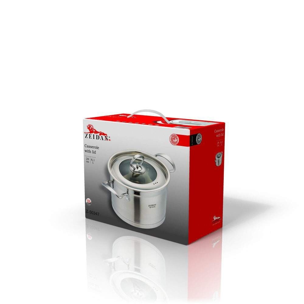Кастрюля из нержавеющей стали Zeidan с крышкой 24 см для газовых электрических и индукционных плит 5,5 л