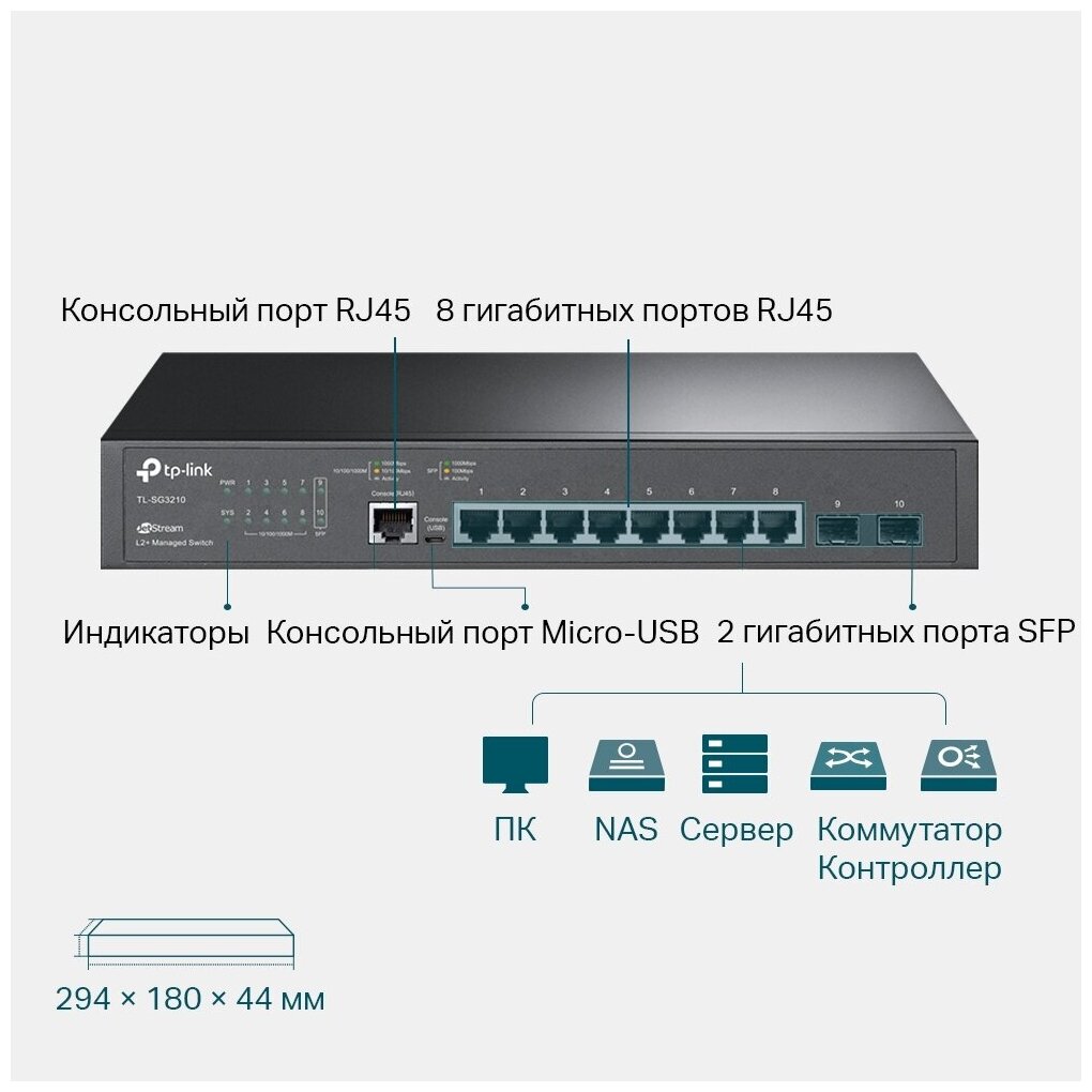 TP-Link TL-SG3210 JetStream 8-портовый гигабитный управляемый коммутатор уровня 2+ с 2 SFP-слотами
