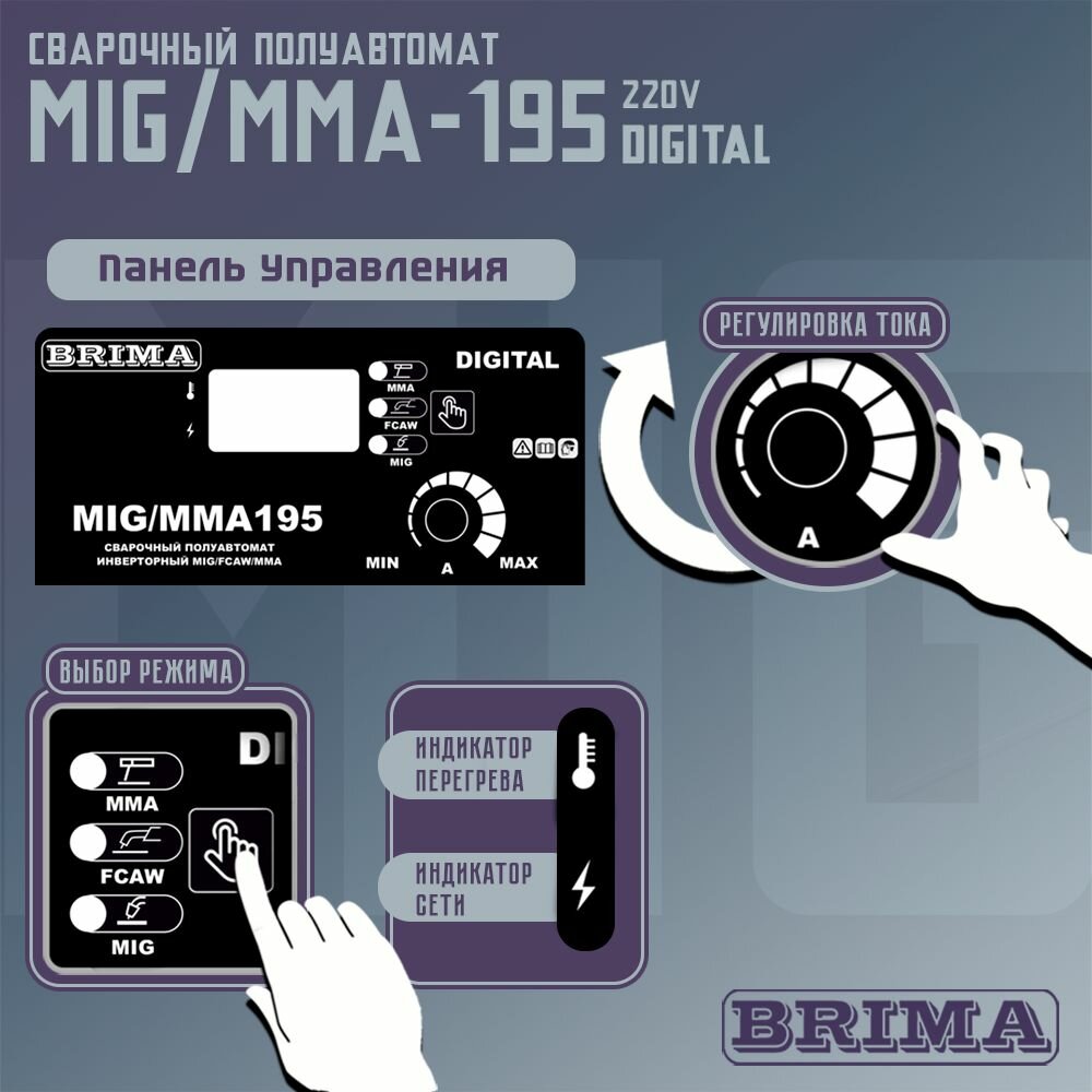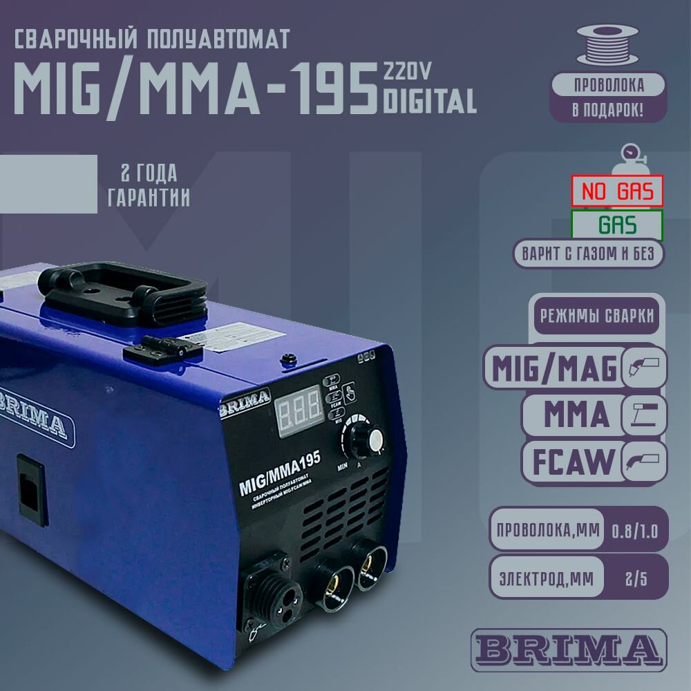 Сварочный аппарат полуавтомат BRIMA MIG/MMA-195 DIGITAL (Катушка флюсовой проволоки в подарок) информация: